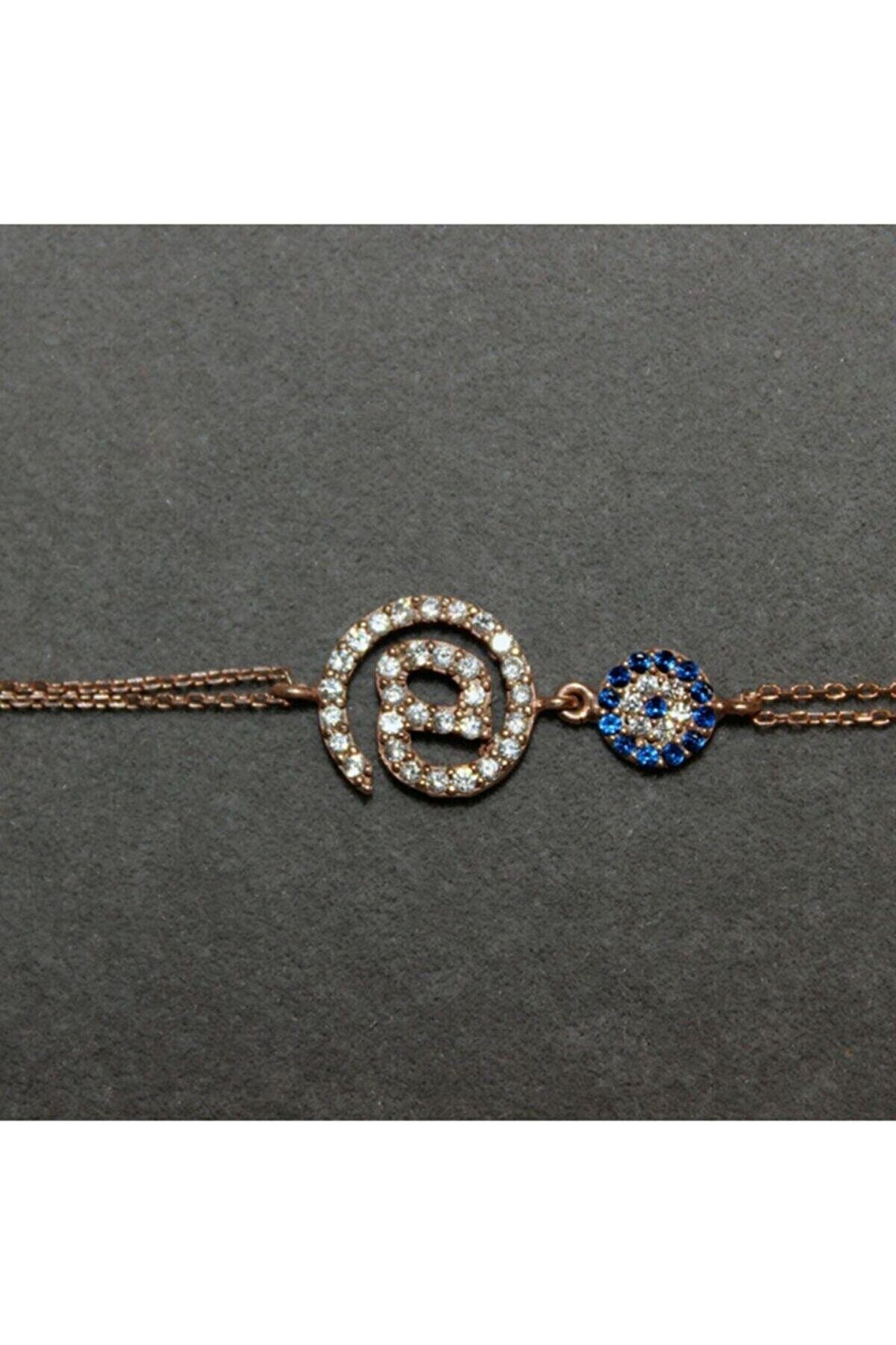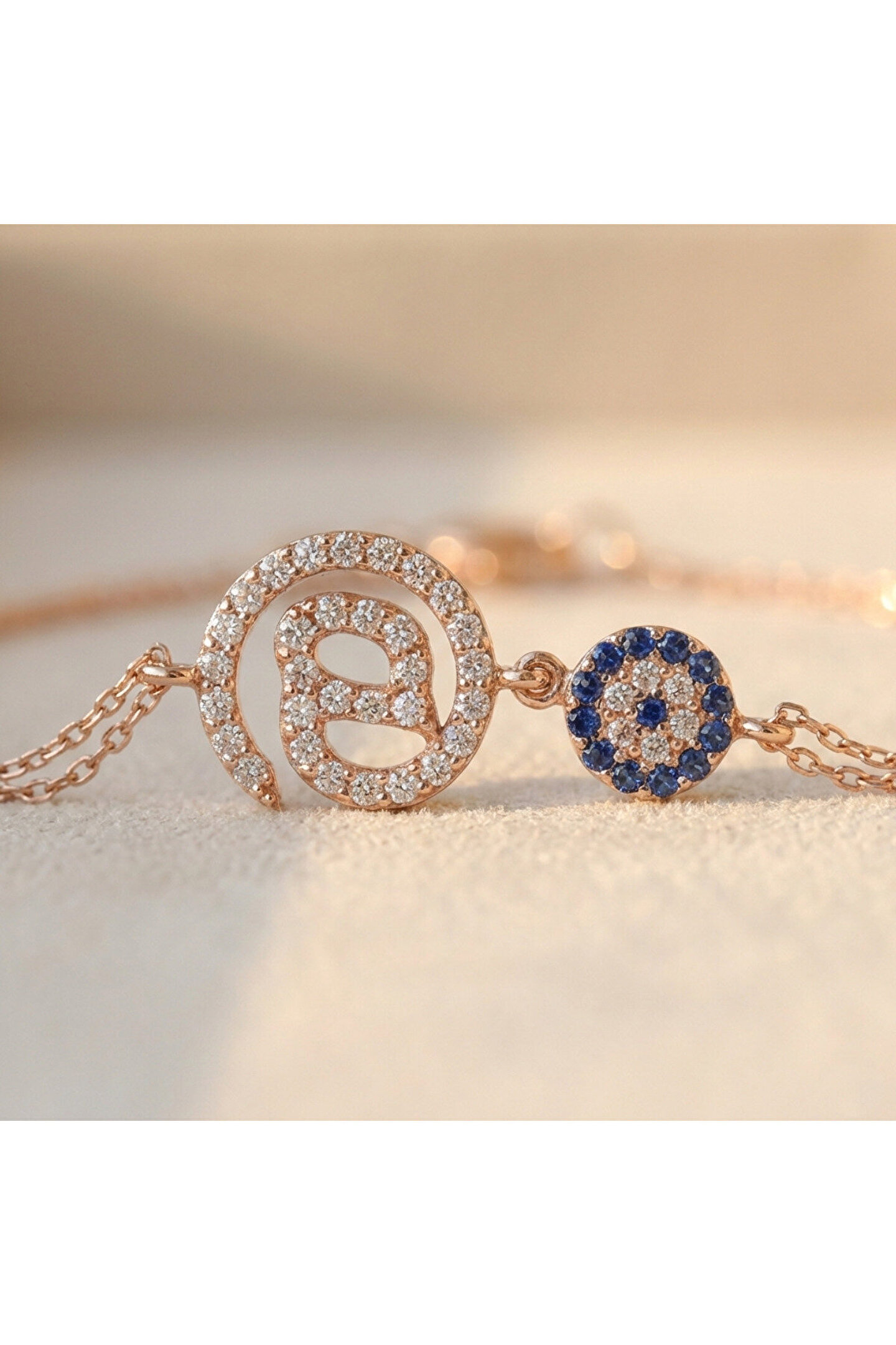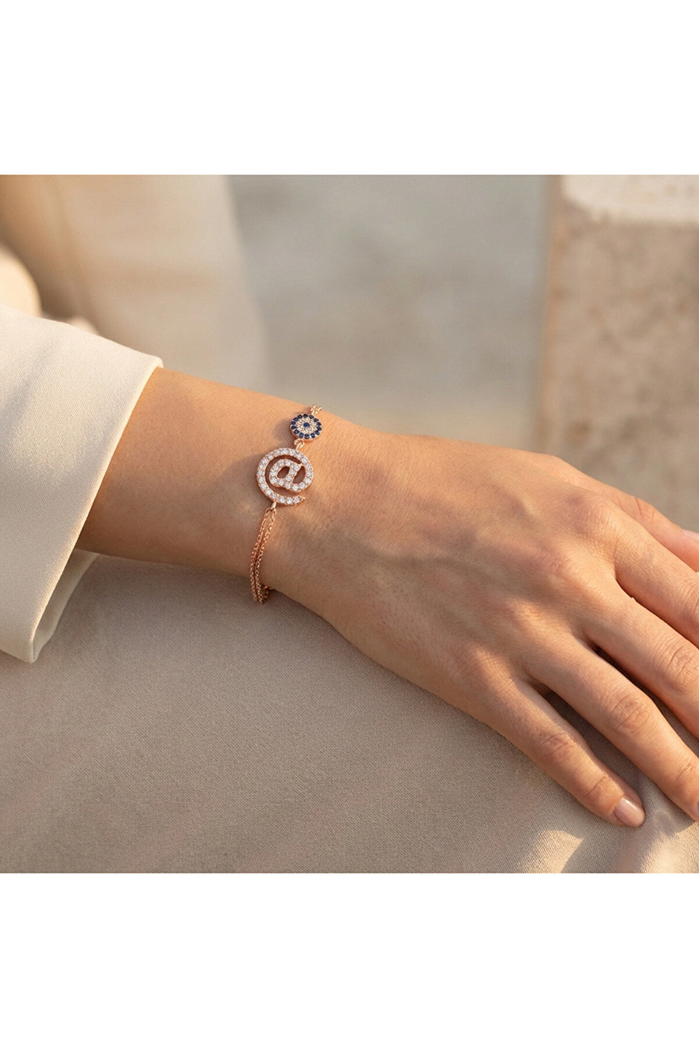 Zarif tasarımıyla dikkat çeken bu gümüş bileklik, her türlü kıyafetle uyum sağlayacak şıklığı sunar; Göz alıcı zirkon taş detayları ile ışıltınızı her ortamda ön plana çıkarır; A bileklik formu, modern ve klasik tarzları harmanlayarak günlük kullanım için idealdir; Kaliteli malzeme seçimi sayesinde uzun süreli kullanım vaat eder ve dayanıklılığı ile ön plana çıkar.; A parçasının genişliği 13.35, boyu 11.70 mm, nazarın çapı 6.80 mm.