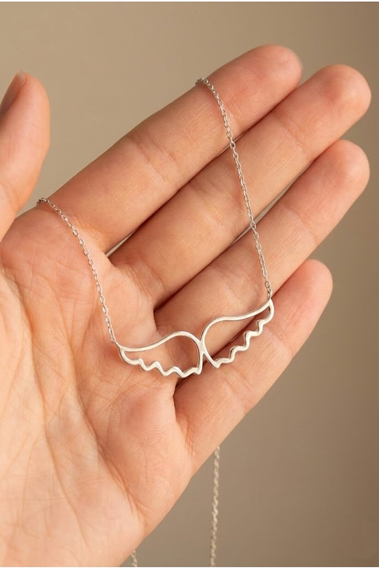Zarif tasarımıyla dikkat çeken melek kanadı kolye, gümüş rengin asaletini ve zirkon taşların ışıltısını bir arada sunar; Zirkon taş kullanımı sayesinde, her açıdan parlayan bu kolye, göz alıcı bir görünüm sağlar; Melek kanadı detayı ile hem modern hem de klasik tarzları birleştirerek, her türlü kıyafetle uyum sağlar; Özel günlerde veya günlük kullanım için ideal olan bu kolye, şıklığınızı tamamlamanız için mükemmel bir aksesuardır;
