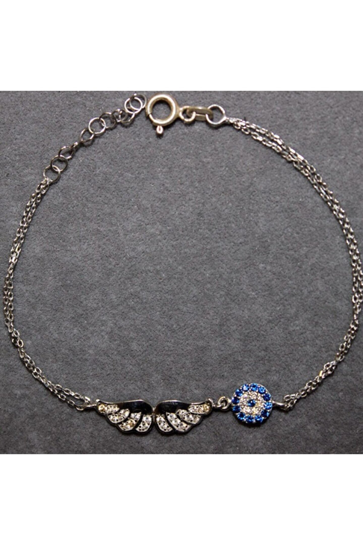 Zarif tasarımıyla dikkat çeken melek kanadı taşlı bileklik, gümüş rengi ve zirkon taş detaylarıyla göz alıcı bir görünüm sunar; Zirkon taş kullanımı sayesinde, bileklik hem şıklığı hem de parıltıyı bir arada barındırır ve her türlü özel gününüzde ışıltınızı ön plana çıkarır; Melek kanadı motifinin zarif çizgileri, bileklik tasarımına modern ve estetik bir dokunuş katarak, günlük kullanım için idealdir; Gümüş rengi ile klasik ve zamansız bir tarz yaratırken, zirkon taşların ışıltısı ile her ortamda dikkat çekici bir aksesuar olmanızı sağlar;