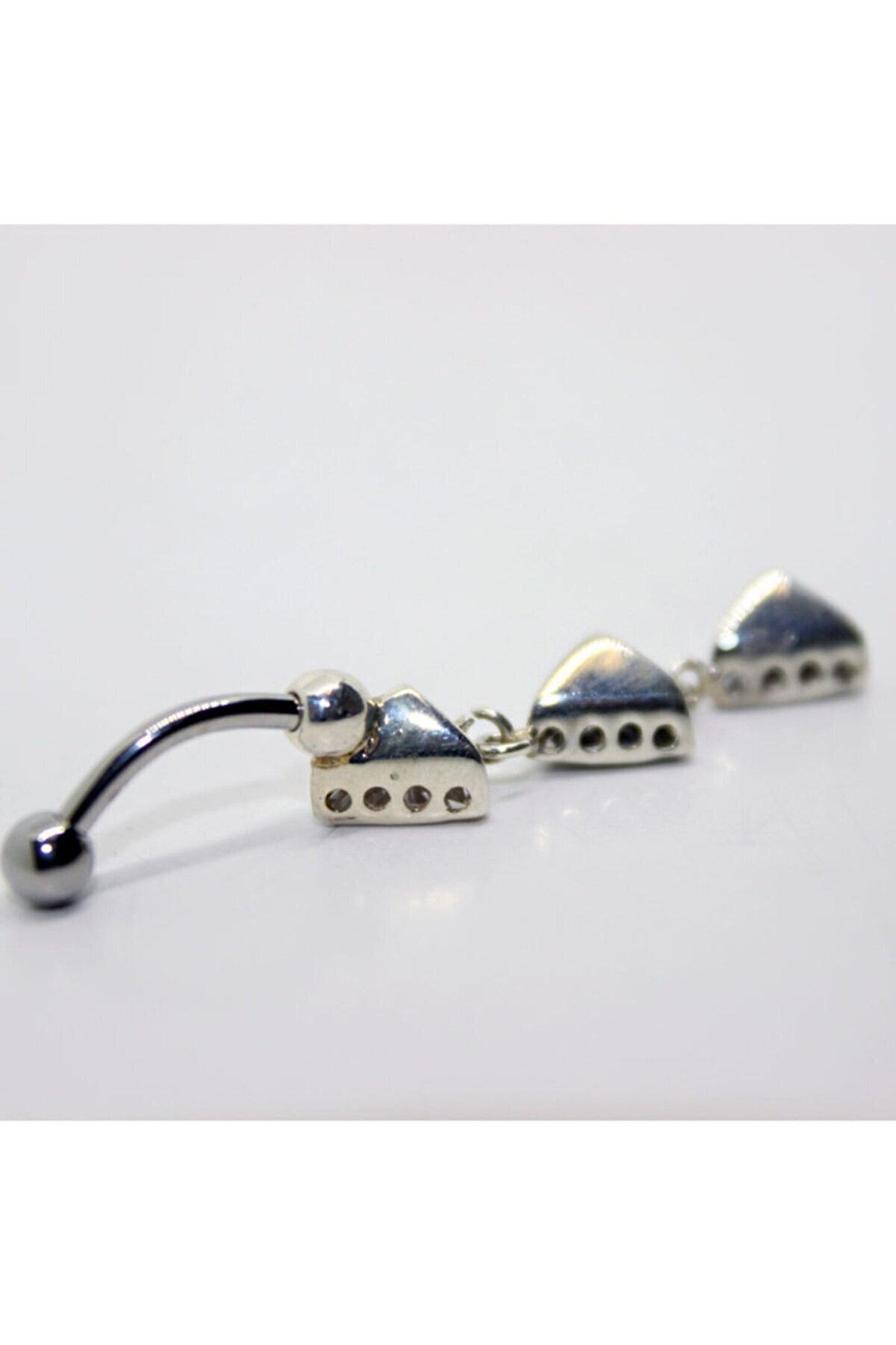 Göğüş kuyumculuk Gümüş sallantılı üçgen pıercıng modelı 925 ayar gümüşten ımal edılmıştır. Gümüş sallantılı üçgen pıercıng modelı üzerinde zirkon taşlar kullanılmıştır. Gümüş sallantılı üçgen pıercıng modelı üzerıne rodyum kaplama yapılmıştır. Rodyum kaplama yapılan gümüş pıercıng modellerı parlaklığını uzun süre muhafaza eder ve oksıtlenmesı gecıkır. Vücuda temas eden bölgelerde cerrahi çelik kullanılmıştır. Gümüş sallantılı üçgen pıercıng modelı %100 el emeğı ıle üretılmıştır. Gümüş ve değerlı taşlar nedenıyle belırtılen ürün ağırlığında ± %5 sapma olabılmektedır. Ürün hedıye kutusunda gönderılecektır. Zirkon taşının özellıklerı; Mücevheratta kullanılan ve çok tercıh edılen taş çeşıtlerınden bırıdır. Zırkon taşı kahverengıdır ve ısıtılarak renksız hale getırılır. Zırkon taş kahverengı, kırmızı ve sarı rengınde kendını gösterır. Mücevher olarak kullanılan renklerden en çok renksız olanı tercıh edılır. Zırkon taşının albenısı sadece fızıksel görünümden değıl, vücudu rahatlatan zıhnı kuvvetlendıren duygusal anlamda dengeyı koruyan ve uyumayı kolaylaştırıcı özellıklerınden dolayı da tercih edildiği bilinir. Ayar 925 ayar Net ağırlık 2,78 gram Anti alerji ve kararma önleyici kaplama Rhodıum kaplama Pıercıng tipi Sallantılı Renk Beyaz Taş rengi Beyaz