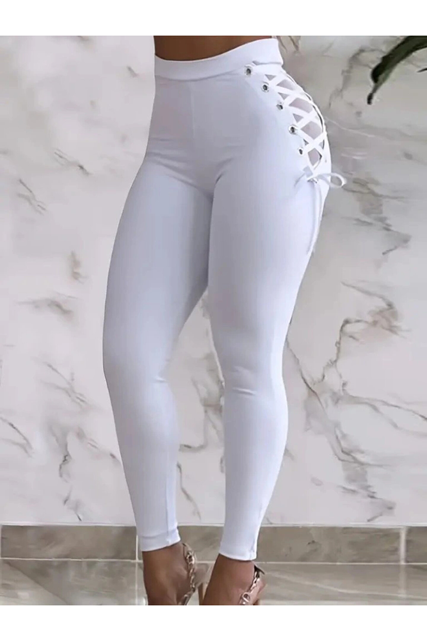 Gökyüzü Moda Kadın Yüksek Bel çapraz Bağcıklı Tül Detaylı Dalgıç Tayt