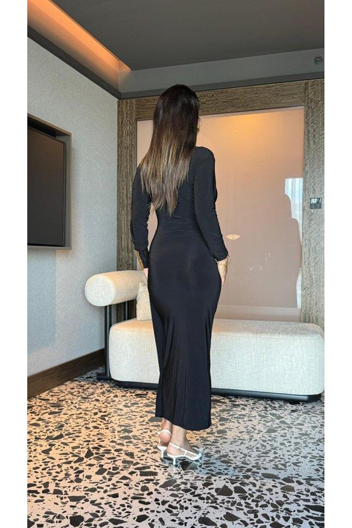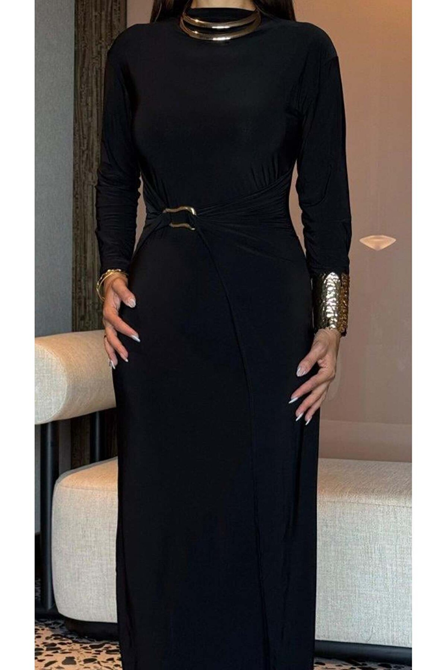 goopall Kadın Balıkçı Yaka Toka Detay Sandy Kumaş Midi Boy Elbise