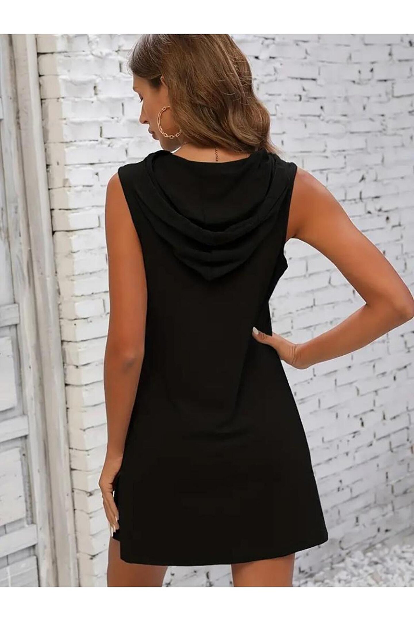 Kadın Kolsuz Kapşonlu Uzun Viskon Elbise