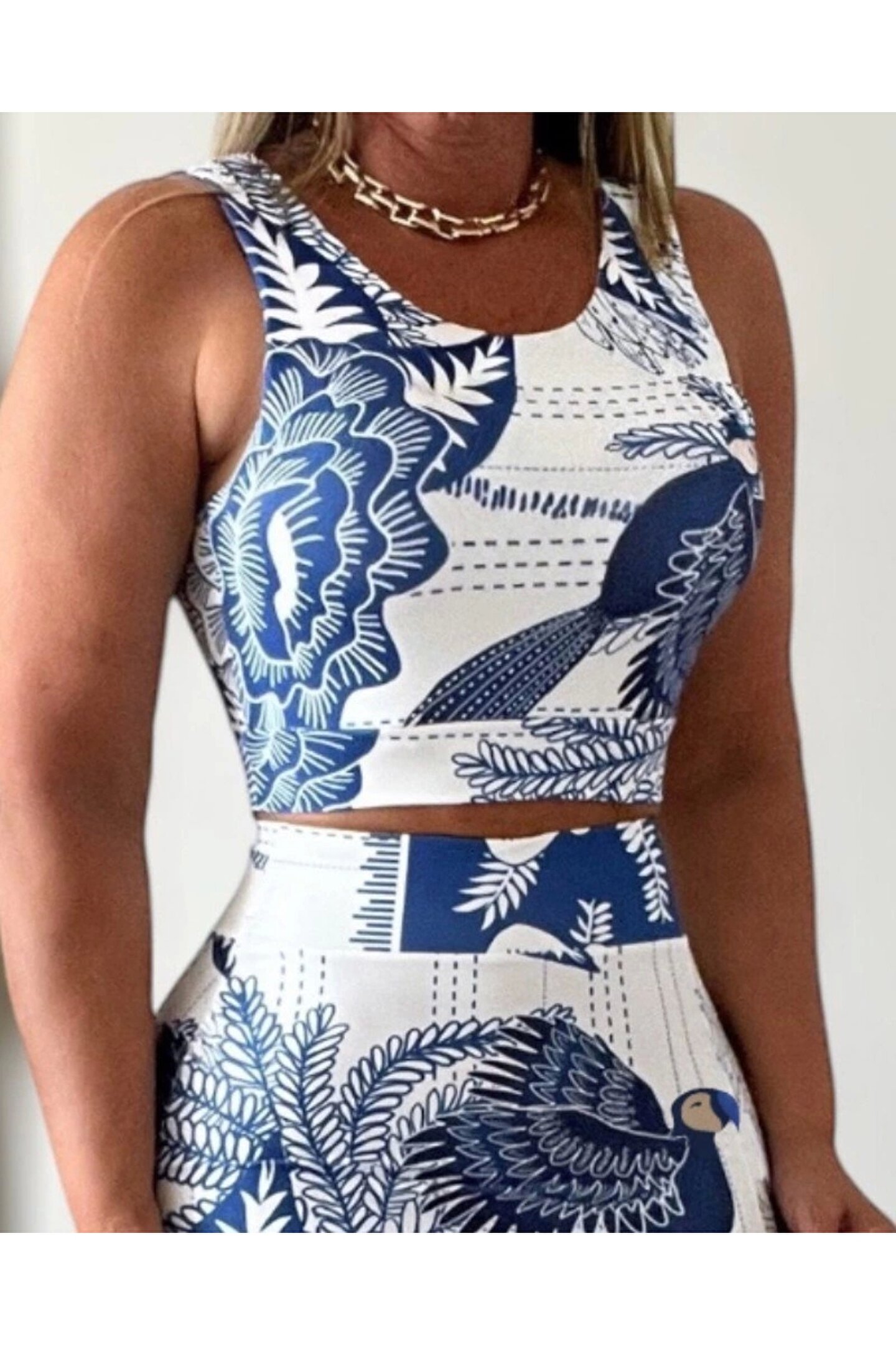 goopall Kadın Sıfır Kollu Yuvarlak Yaka çiçekli Desenli Süprem Crop Ve Yırtmaçlı Etek Ikili Takım