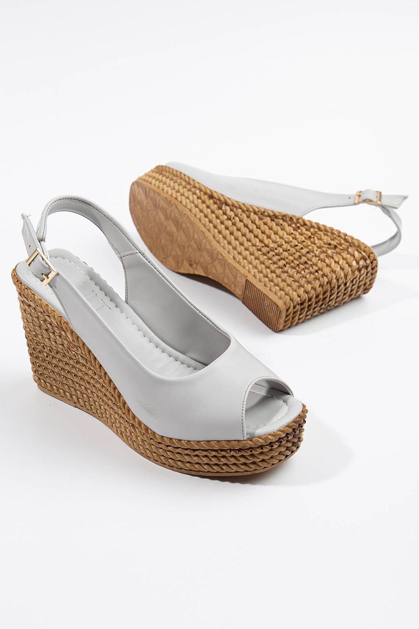 Kadın Dolgu Topuklu Klasik Sandalet Gri