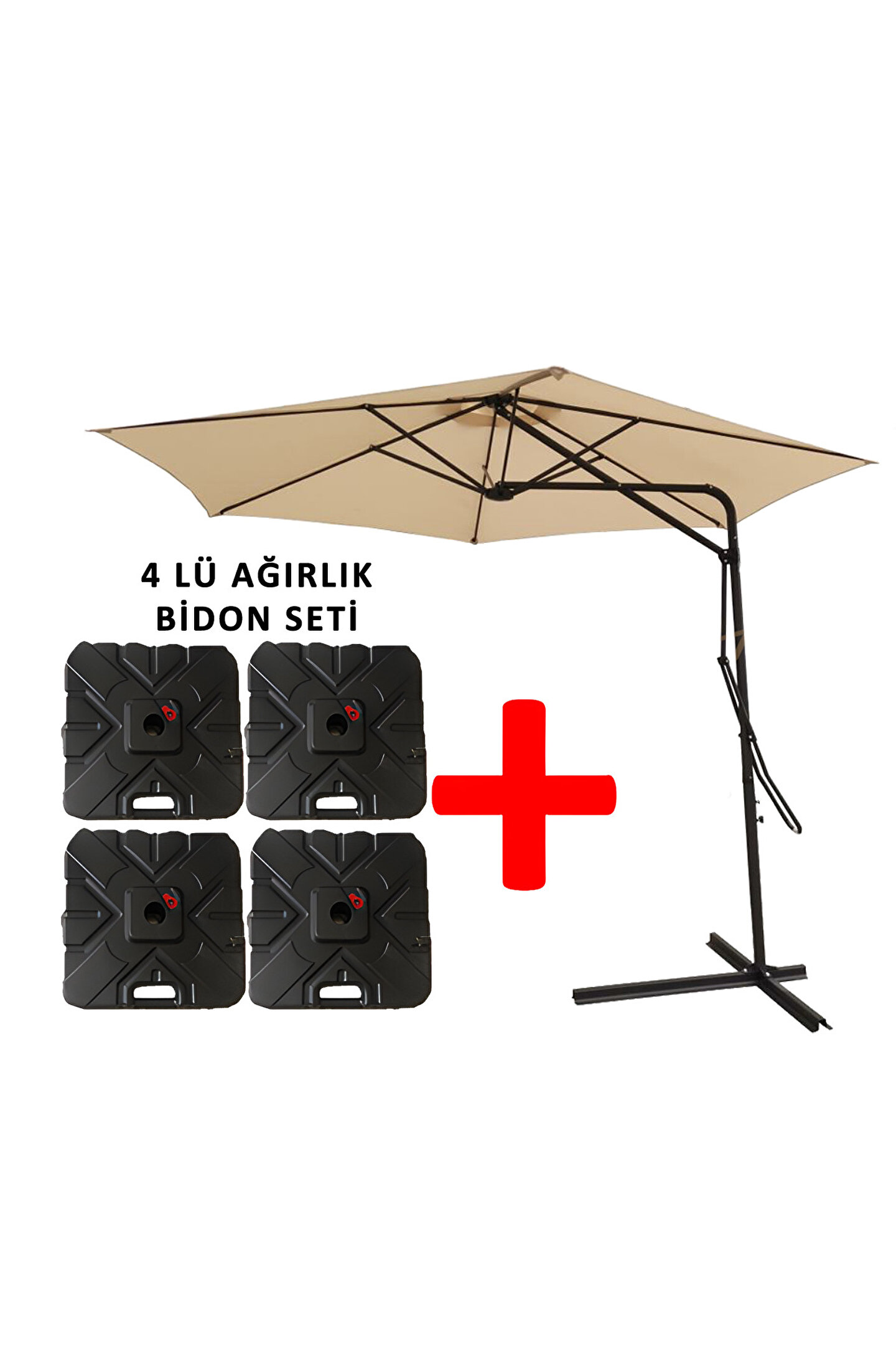 4 LÜ Kum DOLUMU Yapılabilen Ağırlık Seti dahildir.; ; Dış mekanlarınızda size gölge ve serinlik sağlayacak yer tasarruflu birbirinden şık bu şemsiyeler 3 Farklı Renk Olarak Üretilmektedir.; ; Şemsiye Açık Hali Çapı: 3 Metredir 6 Kol İskelet Vardır.; ; İskelet Profil Ebatı :12*18*0.45mm Piyasada Satılan ve ince iskeletli telli modeller ile kıyaslamanyacak kadar sağlamdır ; Tel iskeletli Ürünlerle Kıyaslamayınız Ürün Profil iskelete sahiptir.; ; 3x3m Ebatında Paslanmaz Elektrostatik Özel Boya 220 G Su Geçirmez Kumaşa Sahiptir.; ; 1. Sınıf Kilit Aksamlar Kurulum Şeması İle Beraber Gönderilmekte.; ; Ayak Ağırlığı Müşteri Tarafından Temin Edilecektir Paket içeriğinde Ağırlık seti yoktur ancak Çapraz Ayak Seti vardır.