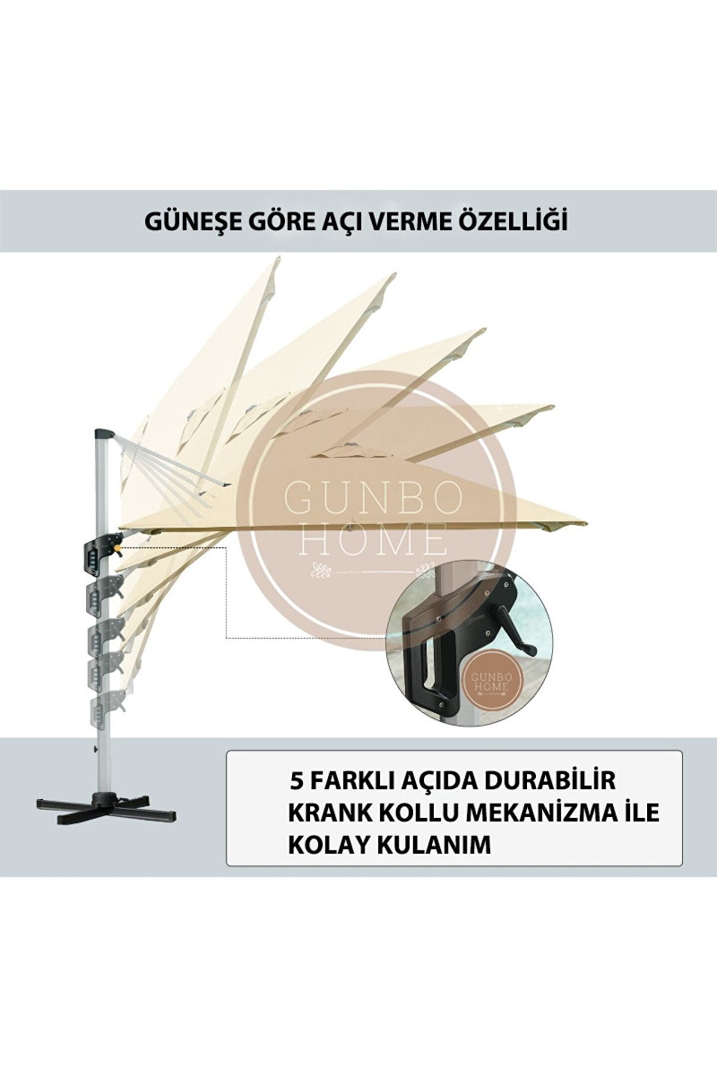 Genişlik 300 cm Yükseklik 260 cm Derinlik 300 cm Ağırlık 25 kg Malzeme Polyester Görselden daha açık bir renktedir(Ekru) ; GÜNEŞE GÖRE AÇI VERİLEBİLMEKTEDİR ; Dış mekanlarınızda size gölge ve serinlik sağlayacak yer tasarruflu birbirinden şık bu şemsiyeler Bej(EKRU) Renk Olarak Üretilmektedir. ; 8 Kol İskelet Vardır. ; ÇAP: 3X3 MT KARE Ebatında Paslanmaz Elektrostatik Özel Boya 300 G Suya Dayanıklı OXFORD Kumaşa Sahiptir. ; 1. Sınıf Kilit Aksamlar Kurulum Şeması İle Beraber Gönderilmektedir AYAK AĞIRLIĞI PAKETE DAHİL DEĞİLDİR ; 50×50 cm ölçülerinde 4 Cm kalınlığındaki istediğiniz bir doğal taş , mermer kestirerek yada hazır ağırlık bidonlarıyla kullanılabilir ;