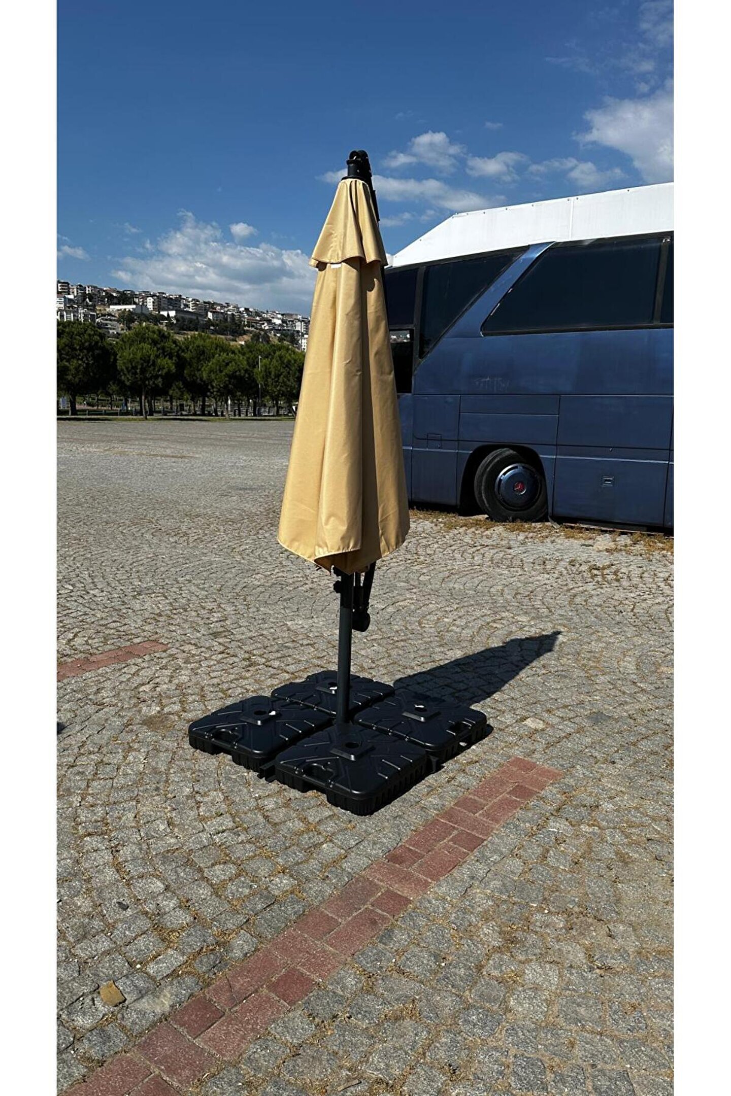 Dörtlü set halinde gelmektedir 50x50x10 Küçük boy plaj şemsiyeleri kullanımı için boru aparati dahildir 3 Metre yuvarlak ve 3×3 kare modellerde de kullanabilmektedir PE UV Katkılı plastikten üretilmiştir Kum + Su ile doldurulduğunda 4lü setin toplam ağırlığı yaklaşık 120 kilo gelmektedir
