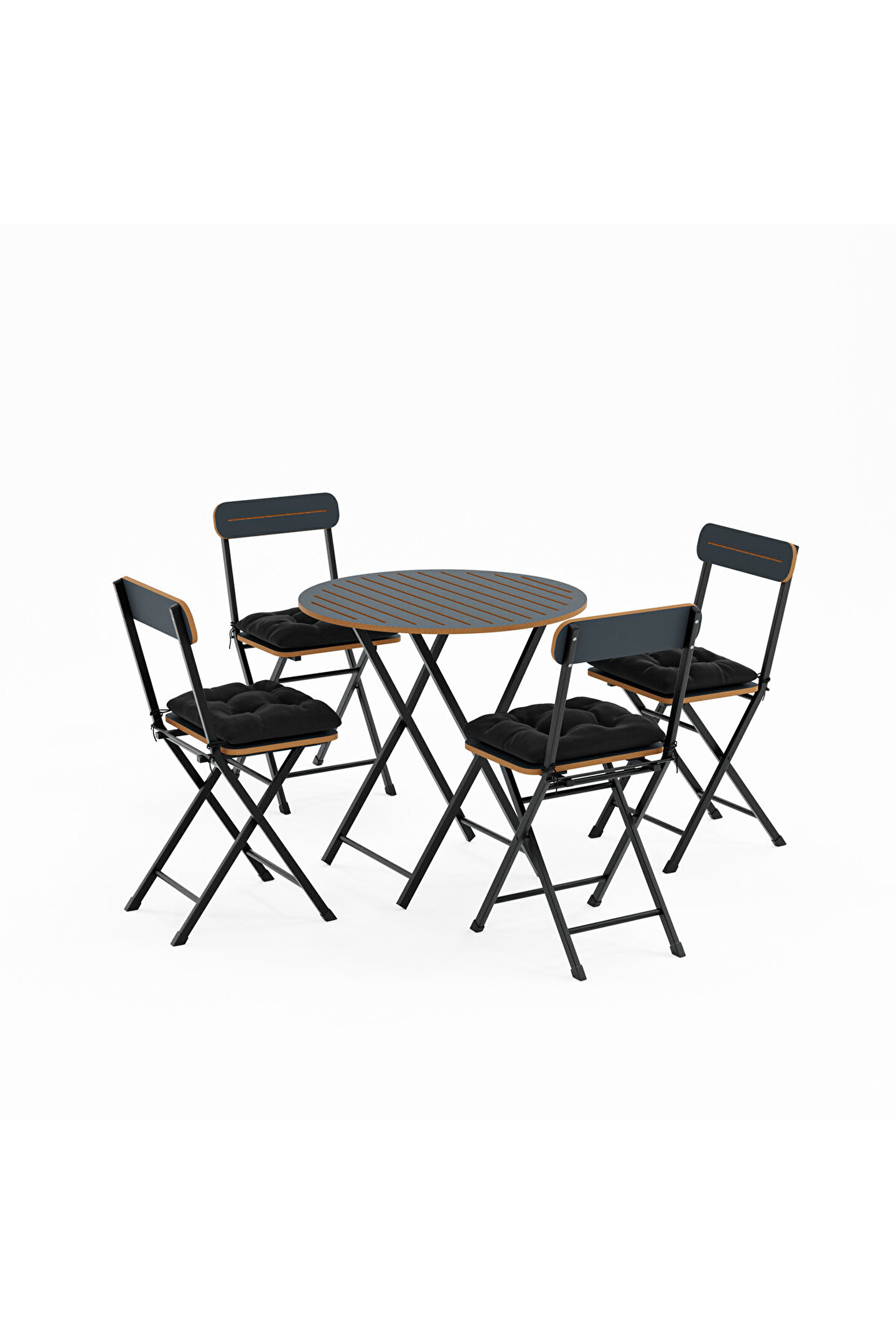• Dört sandalye ve bir yuvarlak masa içeren tam bir oturma grubu.