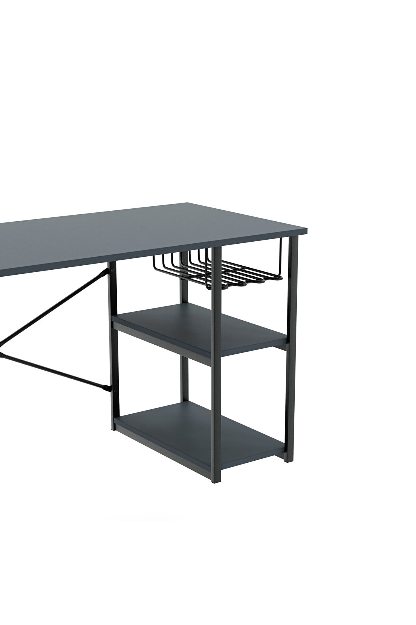 Çalışma masası raflı olduğu için de benzersiz avantajları beraberinde getirir. Raf içeren bölümüne çeşitli eşyalar, objeler, kitaplar ve kırtasiye ürünleri konulabilir. Son derece sağlam yapısı ile öne çıkan