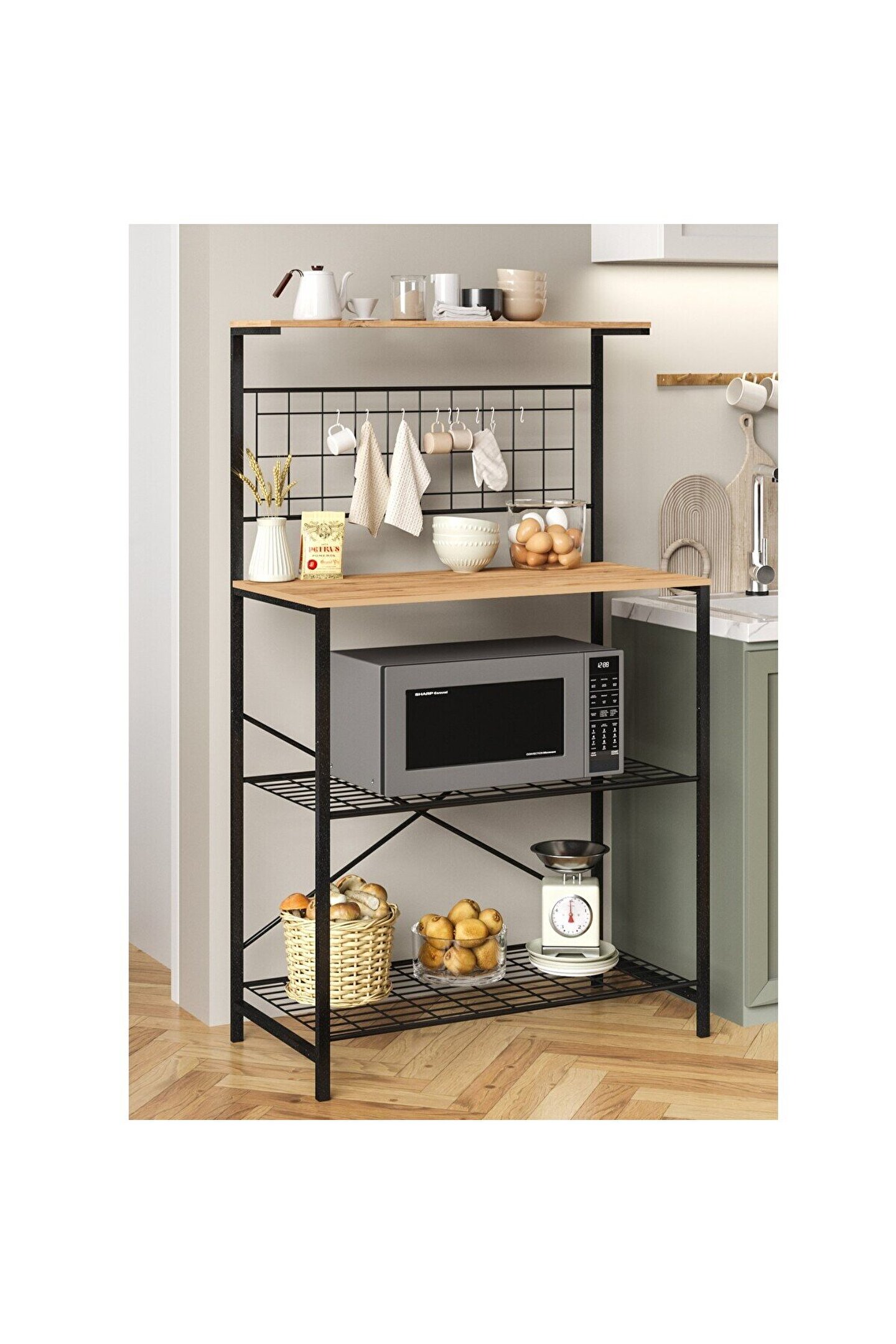 Çok Amaçlı Dolap Mutfak Rafı Bango Masa , modern duruşu ile bir adım öne çıkar. Ürün, isminden de anlaşılacağı gibi raflı mutfak masası modelidir. Çeşitli mutfak eşyalarının muhafazasını mümkün kılar. Kettle, kahve makinesi, midi fırın, mikrodalga fırın, kahve bardağı, ekmek kutusu gibi aklınıza gelebilecek tüm mutfak malzemelerini aynı yerde toplar.