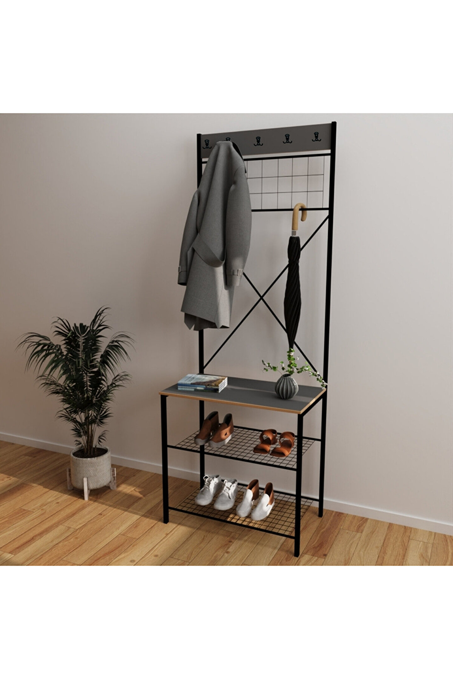 Güzelkan Dar Metal Portmanto, Elbise Askılığı, Vestiyer, Ayakkabılık
