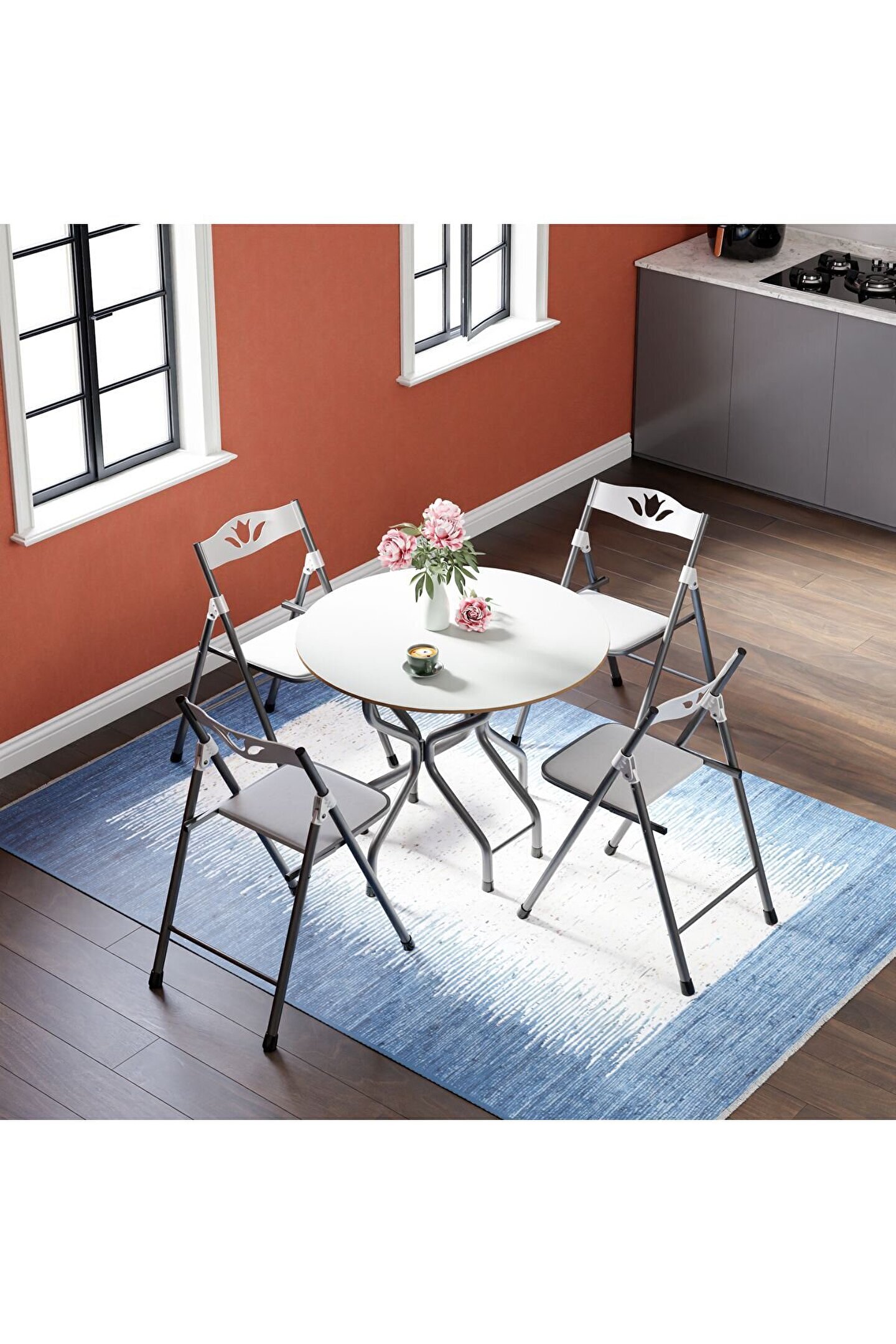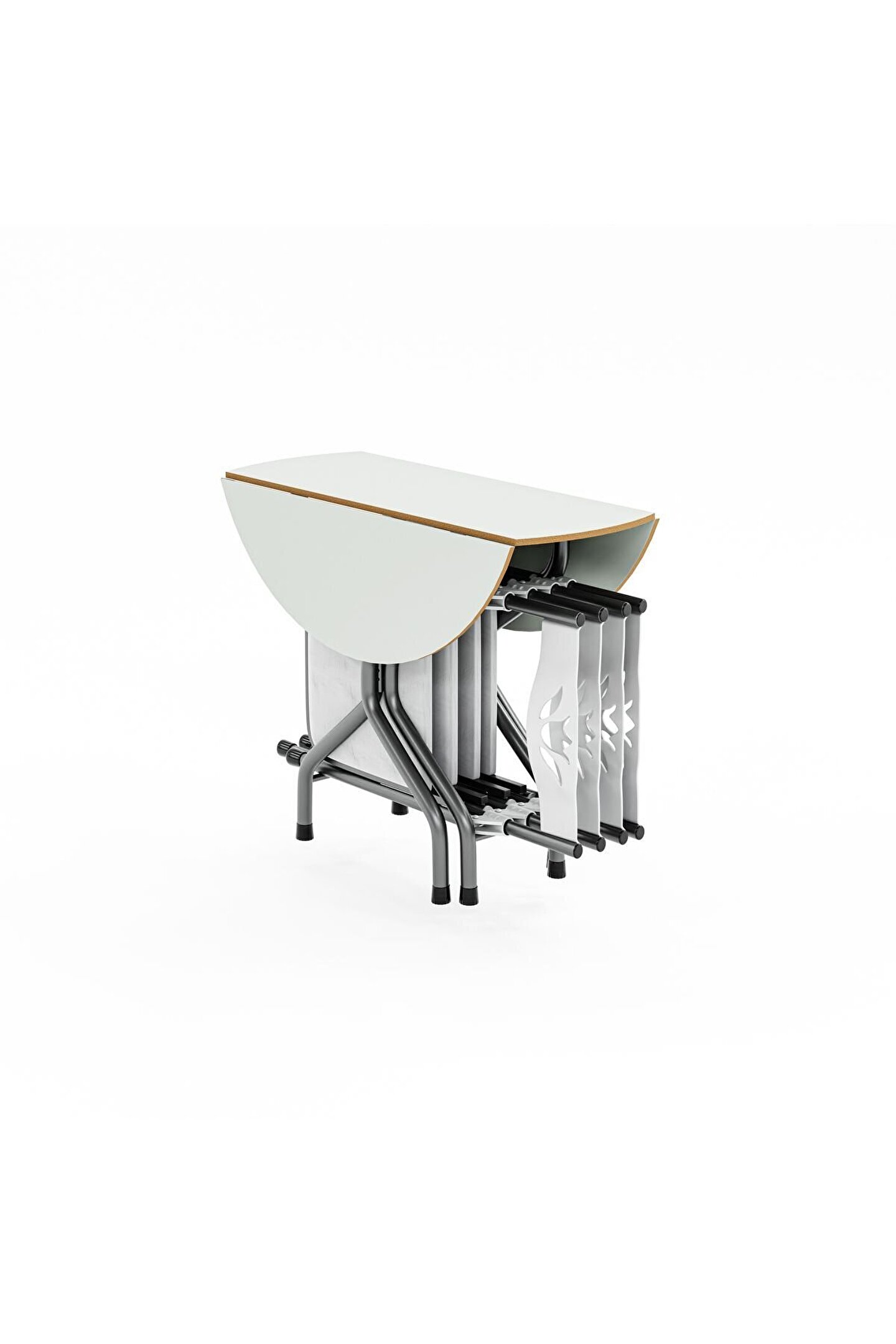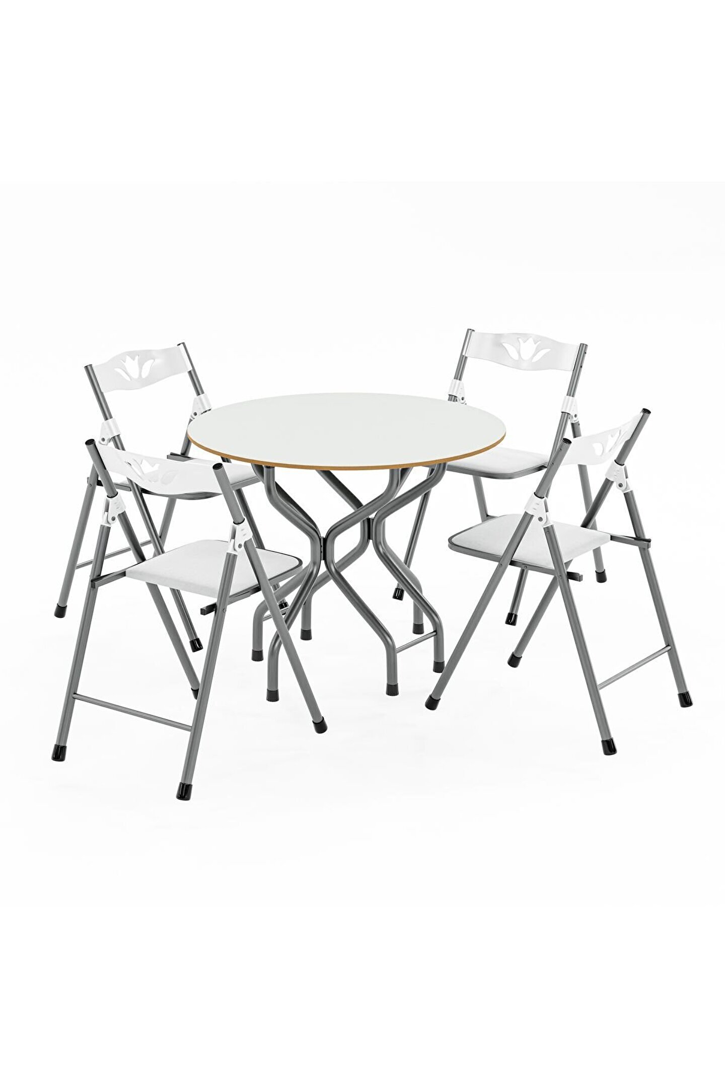 Birinci Kalite %100 Türk Malı;Highglos MDF ;Malzeme ;1 Adet 90x90 Masa ;4 Adet Sandalye ;Masa Yan Kanatları Katlanır Özelliktedir. ;Dar Alanlarda Masanın Bir Kanadı Katlayarakda Kullanabilirsiniz.; isterseniz 2 kanadınıda katlayabilirsiniz. ;Ayrıca tüm sandalyelerde katlanabilir özelliğe sahip olup kullandıktan sonra katlayarak masanın ortasındaki boşluğa yerleştirebilirsiniz. ;Sandalyeler, Mutfak Balkon Salon Gibi iç Mekanlarda Kullanılmak İçin Tasarlanmış Olup Şık Görünümü Sayesinde Bulunduğu Ortama Ayrı Bir Güzellik Katacaktır. ;Sandalyelerin Sırt ve Mafsalları Plastik Ozellikte Olup Estetiktir. ;Sandalyelerin Oturum yerleri Suni deriden imal edilmiştir ;Yenilenmiş Gövde Demir Aksamı En Az 1 ml. Kalınlıktadır. ;Gövde Gri renkli Fırın Boya ile Boyanmıştır. ;Ürünün Açık Ölçüleri: 90x90 cm genişlik, 70 cm yükseklik.;Ürünün Kapalı Ölçüleri: 39 cm Genişlik, 90 cm Uzunluk, 70 cm Yükseklik. Ürün Demonte Olarak Gönderim Yapılacaktır.
