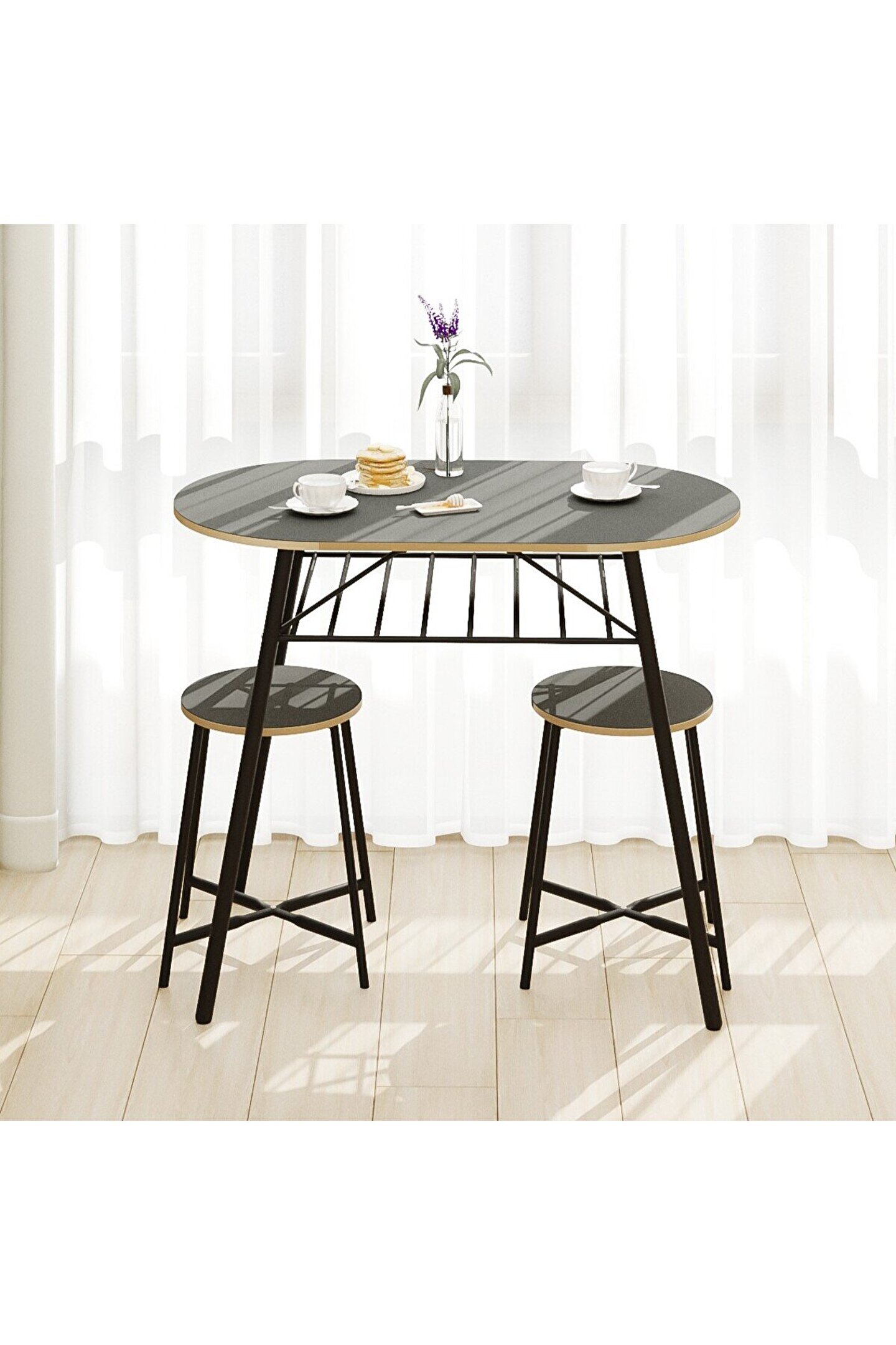 •  Mutfak Masası Oval Tabure Takımı Masa Sandalye Takımı, iki kişilik bir set olarak gelir ve içeriğinde bir adet oval masa ile iki adet tabure bulunur. Bu parçaların her biri, hem salon hem de mutfak gibi çeşitli yaşam alanlarınıza uyum sağlayacak şekilde estetik bir tasarıma sahiptir. Modern ve minimalist görünümü, herhangi bir oda dekorasyonunu kolaylıkla tamamlar.