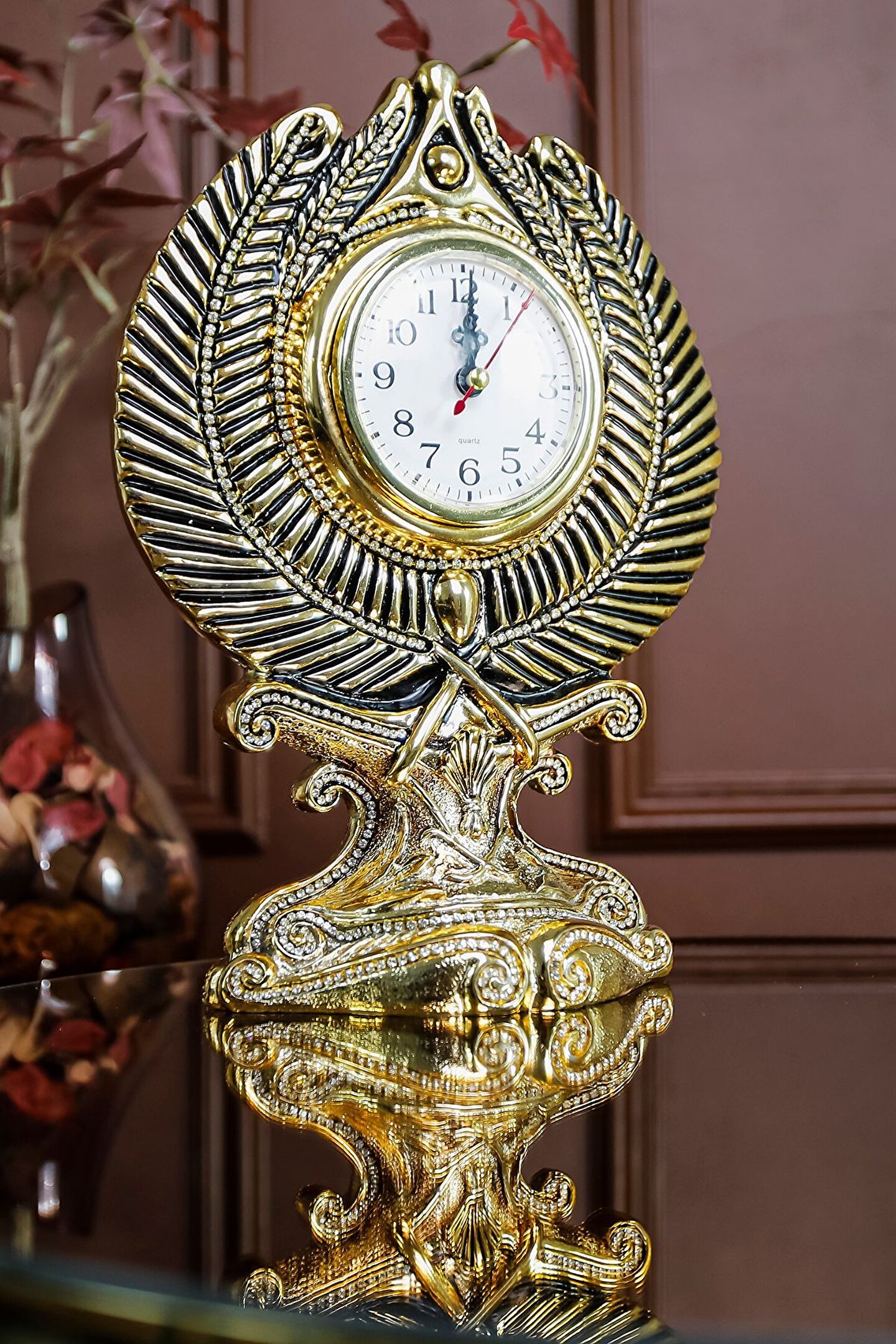 Zamanın Bereketi : Başak Motifli Masa Saati ? Başak, toprakla bütünleşmiş bir simge olarak, bereketin, verimliliğin ve bolluğun temsilcisidir.; Başaklar hasat zamanını simgelerken, aynı zamanda emeğin ve çalışmanın güzelliklerini hatırlatır.; Başak motifleri, yaşam alanınıza sadece görsel bir estetik katmakla kalmaz, aynı zamanda evinizi ve işyerinizi bereket enerjisiyle doldurur.; Bu zarif masa saati, başak motifleriyle bezenmiş estetik bir şölen sunarken, aynı zamanda bereketin ve bolluğun sembolü olan başağın derin anlamlarını taşıyor.; Aynı zamanda her anın kıymetini bilmeyi, çabaların meyvesini toplamayı ve bereketle dolu bir yaşamı temsil ediyor.; Her bakışta size bereket ve huzur hissi katacak bu özel saat, zamanı izlerken aynı zamanda yaşamınıza anlam katmayı hedefliyor.; Tüm bu sebeplerle; saatimiz evine veya ofisine zarafet katmak isteyen ve vakti değerli olan takipçilerimize göre.; ?