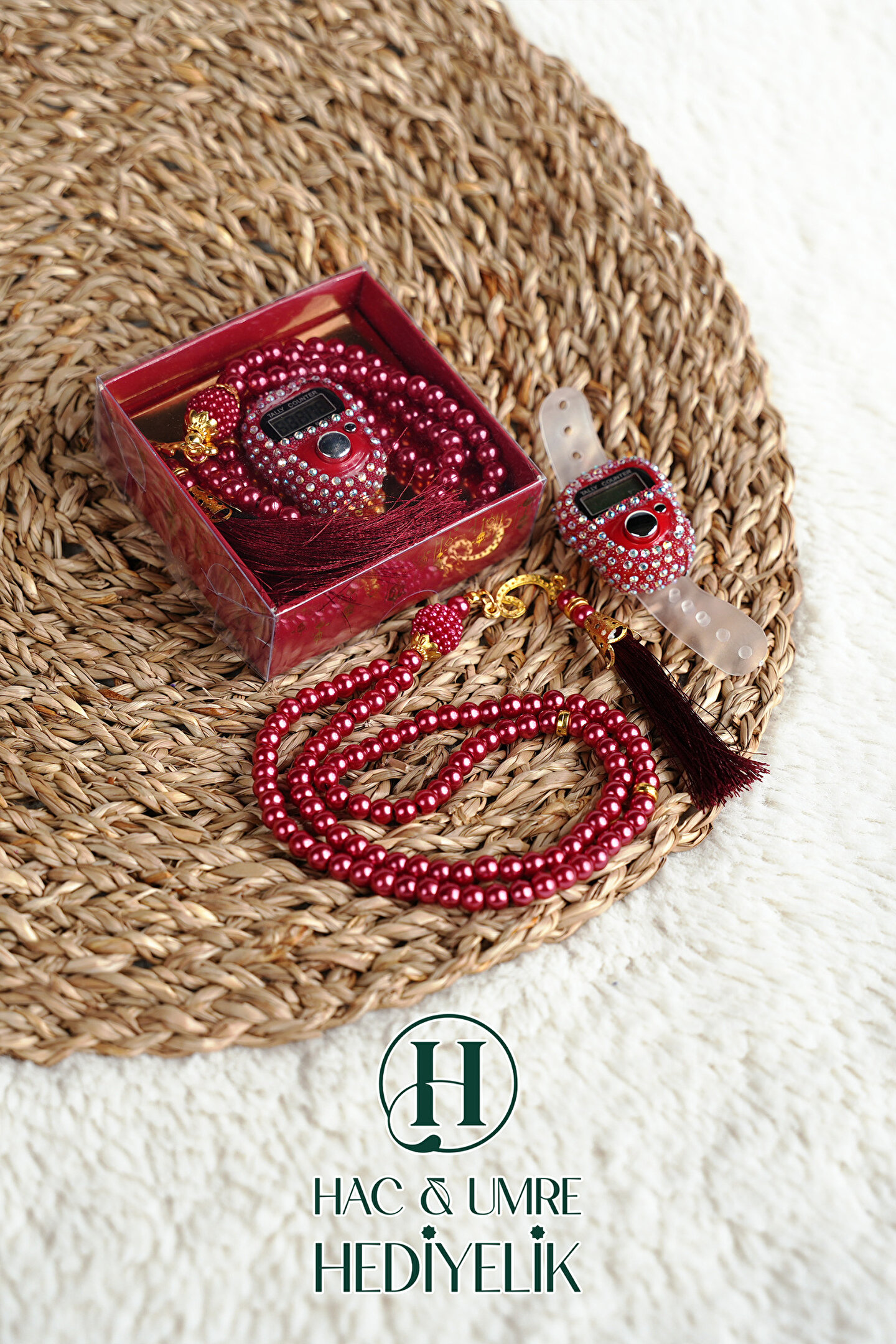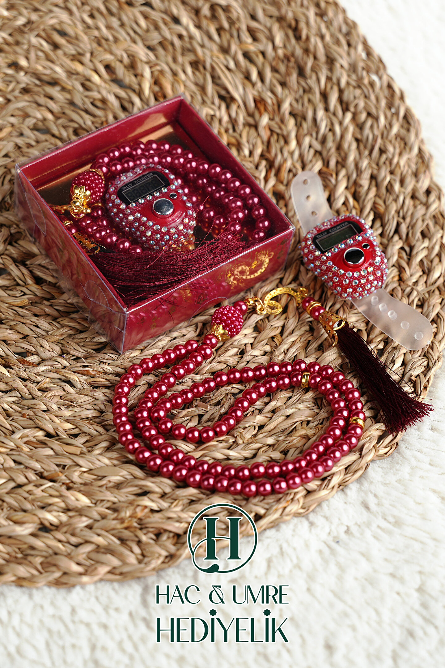 Hac Umre Hediyelik Taşlı Zikirmatik ve İnci Tesbih Seti | Mevlüd Hac Umre Davet Organizasyon Hediyesi | 10 Adet Set