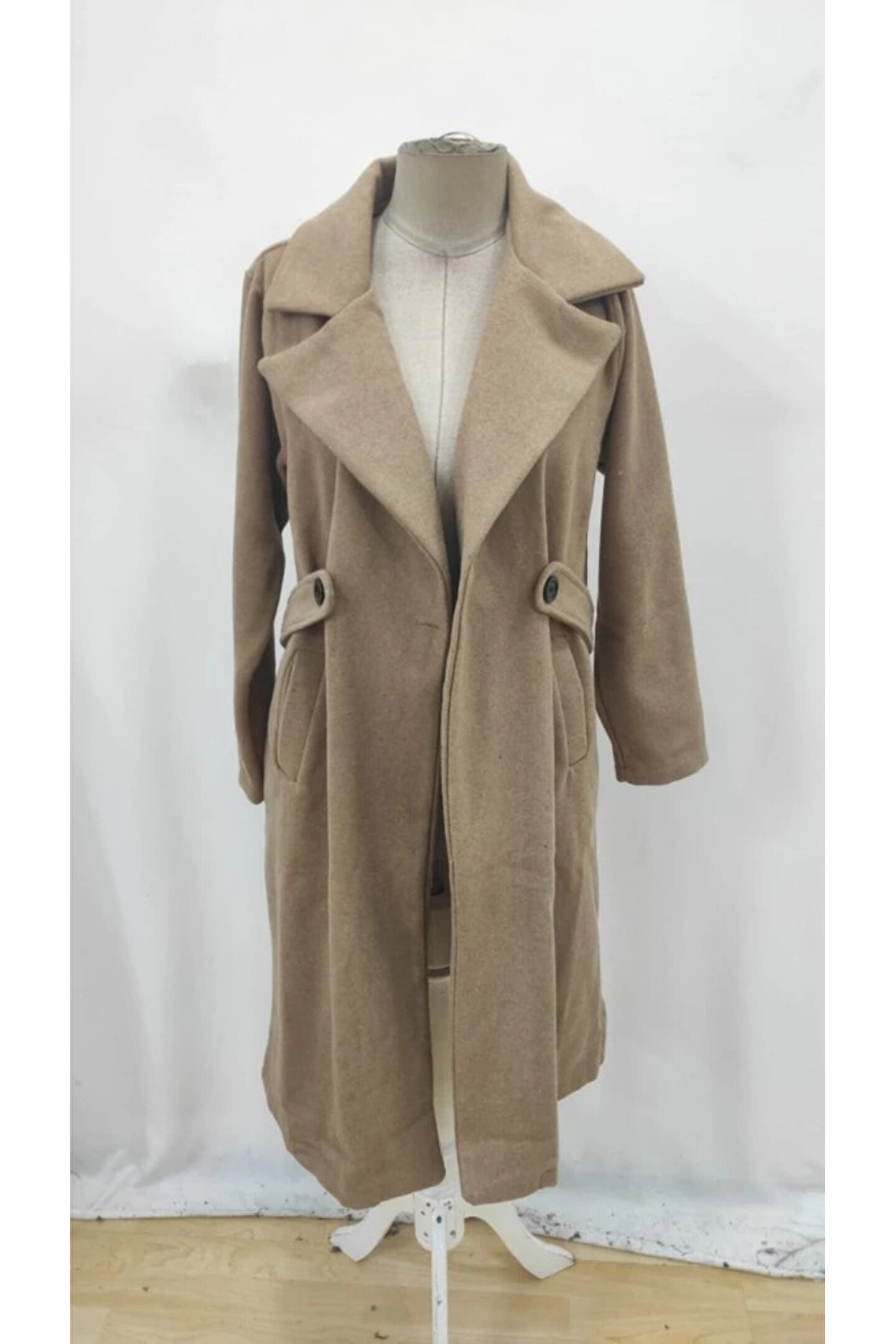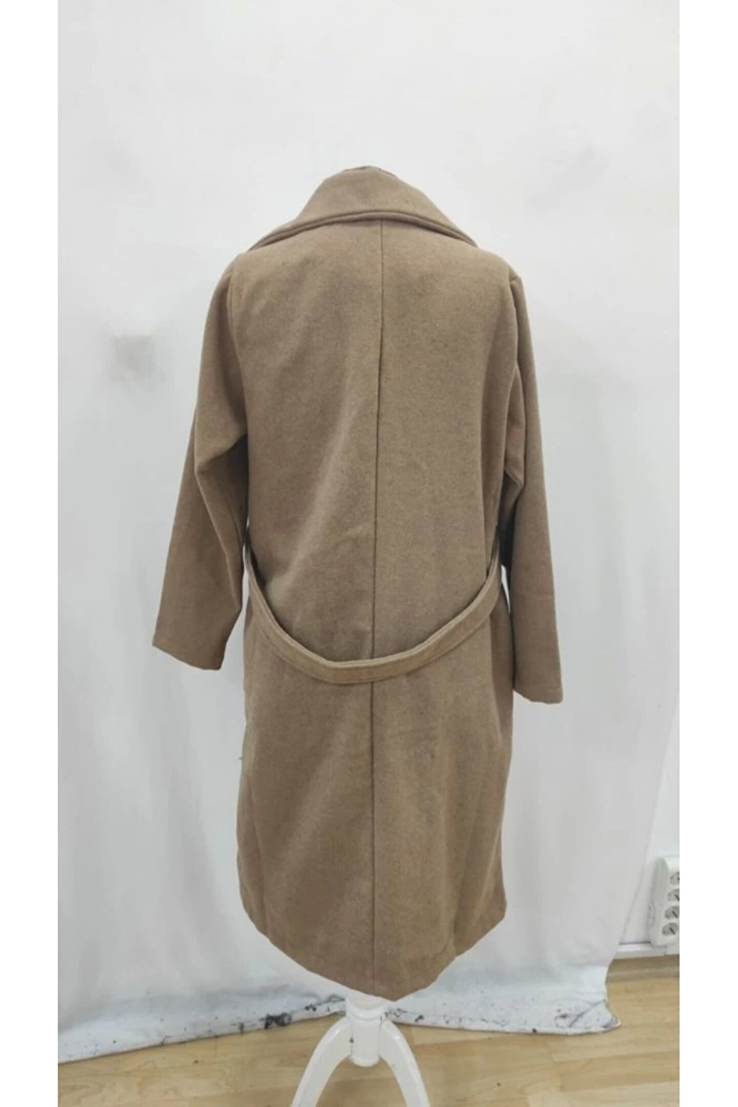 Kadın Uzun Kollu Yakalı Belde şerit Düğme Detaylı Cepli Mini Kaşe Kaban