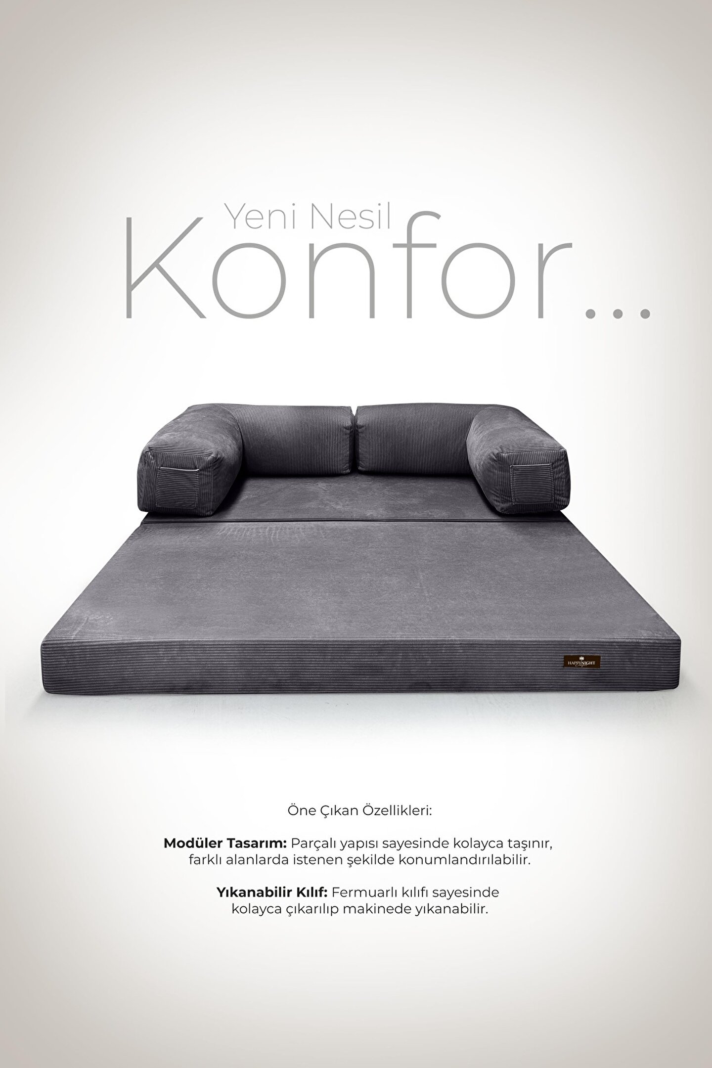 Modüler Koltuk – Yıkanabilir Kılıflı, Sünger Dolgulu, Kaydırmaz Tabanlı Modern yaşam alanları için tasarlanan bu modüler koltuk, esnek kullanımı ve konforlu yapısıyla hem oturma hem dinlenme alanı oluşturur.; İster tek başına, ister farklı modüllerle kombinleyerek kullanabilirsiniz.; Yüksek yoğunluklu sünger dolgusu, uzun süreli oturumlarda formunu korur ve ideal sertlik seviyesiyle rahatlık ile desteği mükemmel biçimde dengeler.; Öne Çıkan Özellikler: