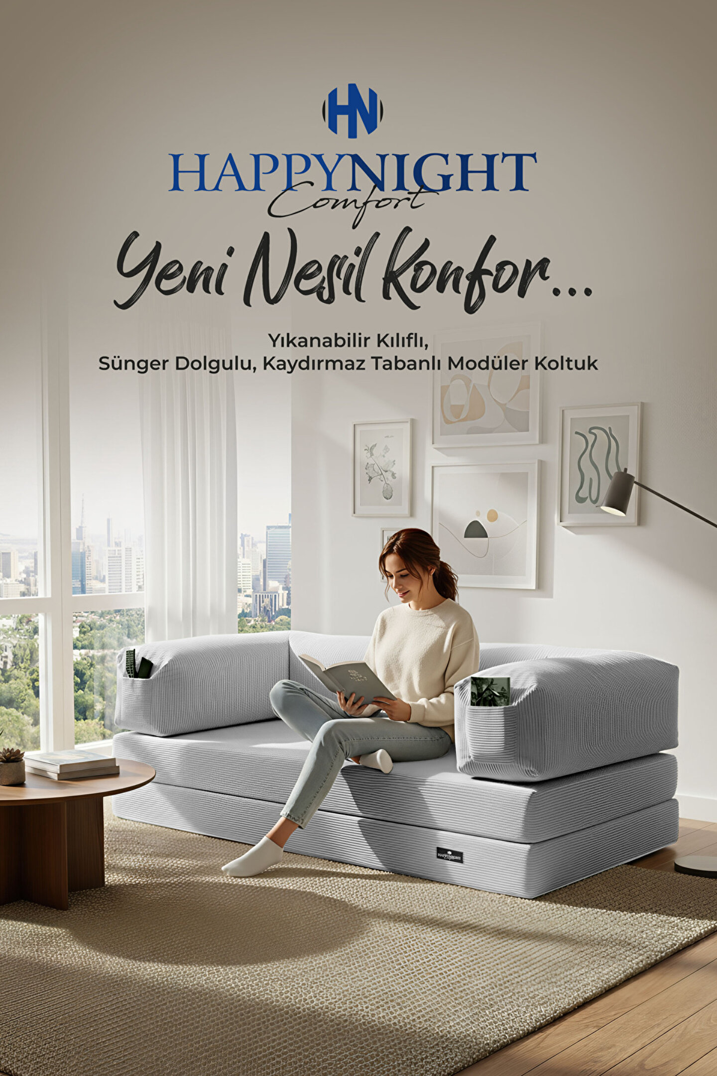 Modüler Koltuk – Yıkanabilir Kılıflı, Sünger Dolgulu, Kaydırmaz Tabanlı Modern yaşam alanları için tasarlanan bu modüler koltuk, esnek kullanımı ve konforlu yapısıyla hem oturma hem dinlenme alanı oluşturur.