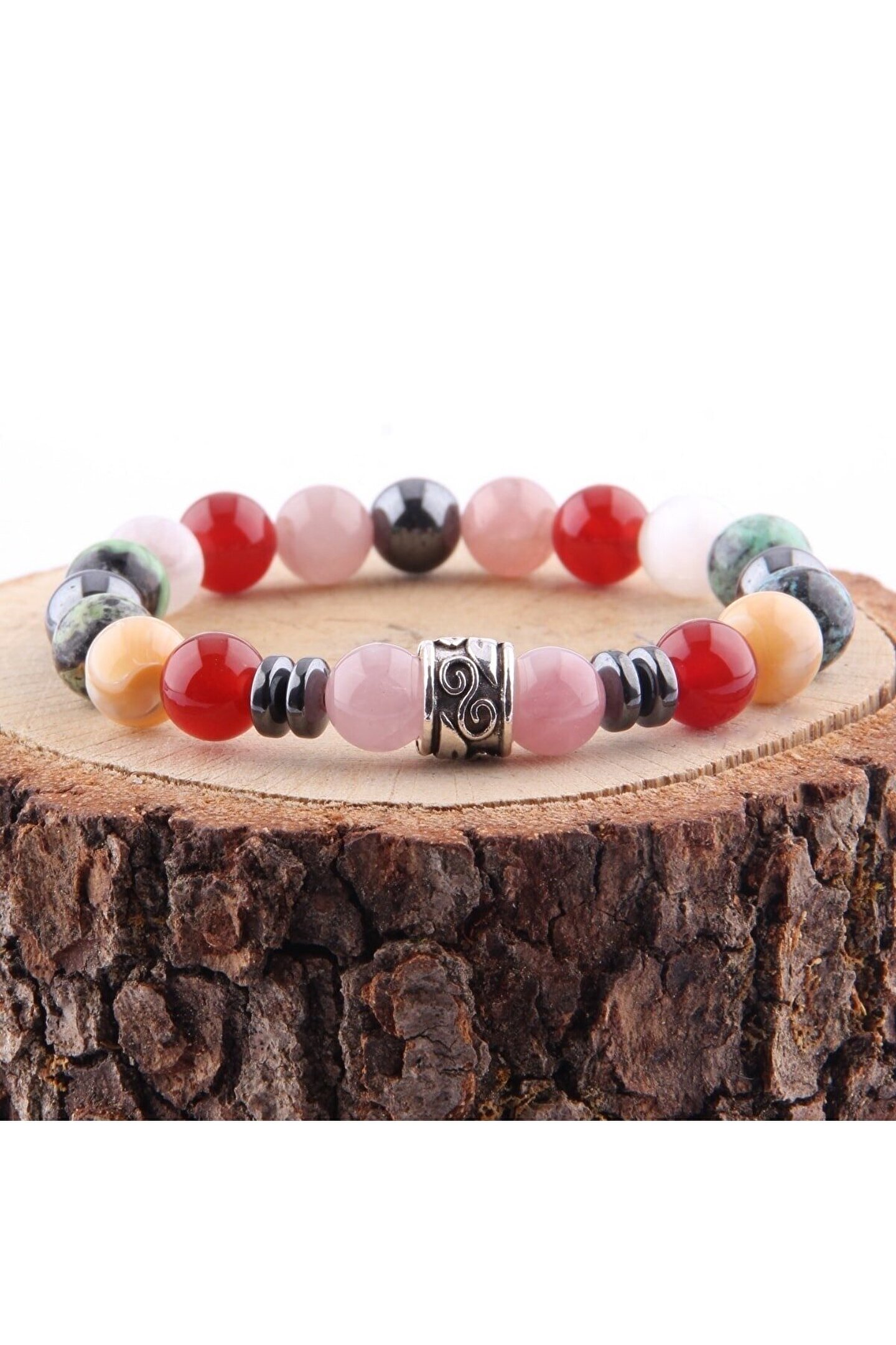 Özel Tasarım Doğal Taş Bileklik Ürünlerimiz gerçek doğal taştır. ; Sertifikasıyla birlikte gönderilir. ; Bileklikte Kullanılan Taşlar Pembe Kuvars - Akik - Varisit - Hematit - Selenit Pembe Kuvars Taşı Neden Tercih Ediliyor Mutluluk hissi verdiğine inanılır. ; Özgüven duygusunu arttırdığı söylenmektedir. ; Kalbi hastalıklara ve travmalara karşı koruduğu iddia edilmektedir. ; Akik Taşı Neden Tercih Ediliyor Genel sağlık taşı olarak bilinir. ; Vücuttaki fazla veya negatif enerjiyi boşalttığı ve sakinleştirdiği söylenir. ; Vücudun kendini yorgun ve bitkin hissettiği zamanlarda toparlamasına yardımcı olduğu söylenir. ; Kişinin sosyalleşmesine ve çevreye uyum sağlamasına yardımcı olduğuna inanılmaktadır. ; Korkuları yenmeye, cesareti artırmaya yardımcı olduğu söylenir. ; Akıl ve mantık gücünü geliştirdiğine inanıldığı için sanatçılar tarafından çokça tercih edilmektedir Varisit Taşı Neden Tercih Ediliyor Özgüvenini arttırdığı söylenir. ; Cesaret verdiğine inanılıyor. ; Vücuttaki kan akışını dengelemek için kullanılır. ; Hematit Taşı Neden Tercih Ediliyor Stresi azalttığı söylenir. ; Hafızayı kuvvetlendirmesi amacıyla kullanılır. ; Eklem romatizmalarına karşı etkili olduğu söylenir. ; Kişinin kendi ile barışık olmasını sağladığına inanılır Selenit Taşı Neden Tercih Ediliyor Yüksek frekansta titreşen yüksek enerjili bir doğal taştır. ; Selenit taşının arındırıcı ve arındırıcı bir etkiye sahip olduğuna inanılıyor. ; Kişinin çevresindeki kötü enerjileri temizlediği söylenir.;
