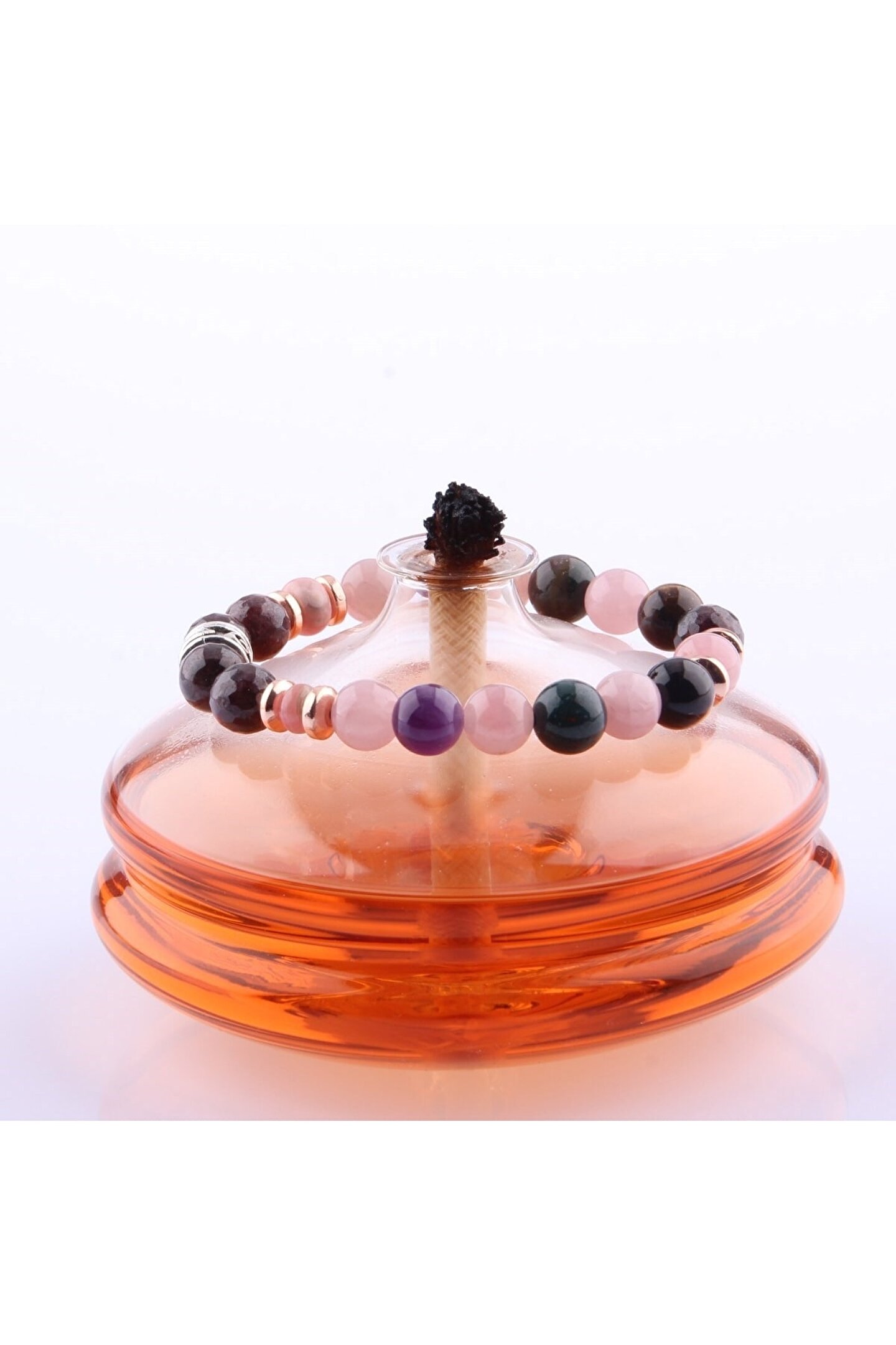 Haremi Sertifikalı Kan Taşı Rodokrozit Pembe Kuvars Lal Ametist Kaplan Gözü 8 Mm Doğal Taş Bileklik