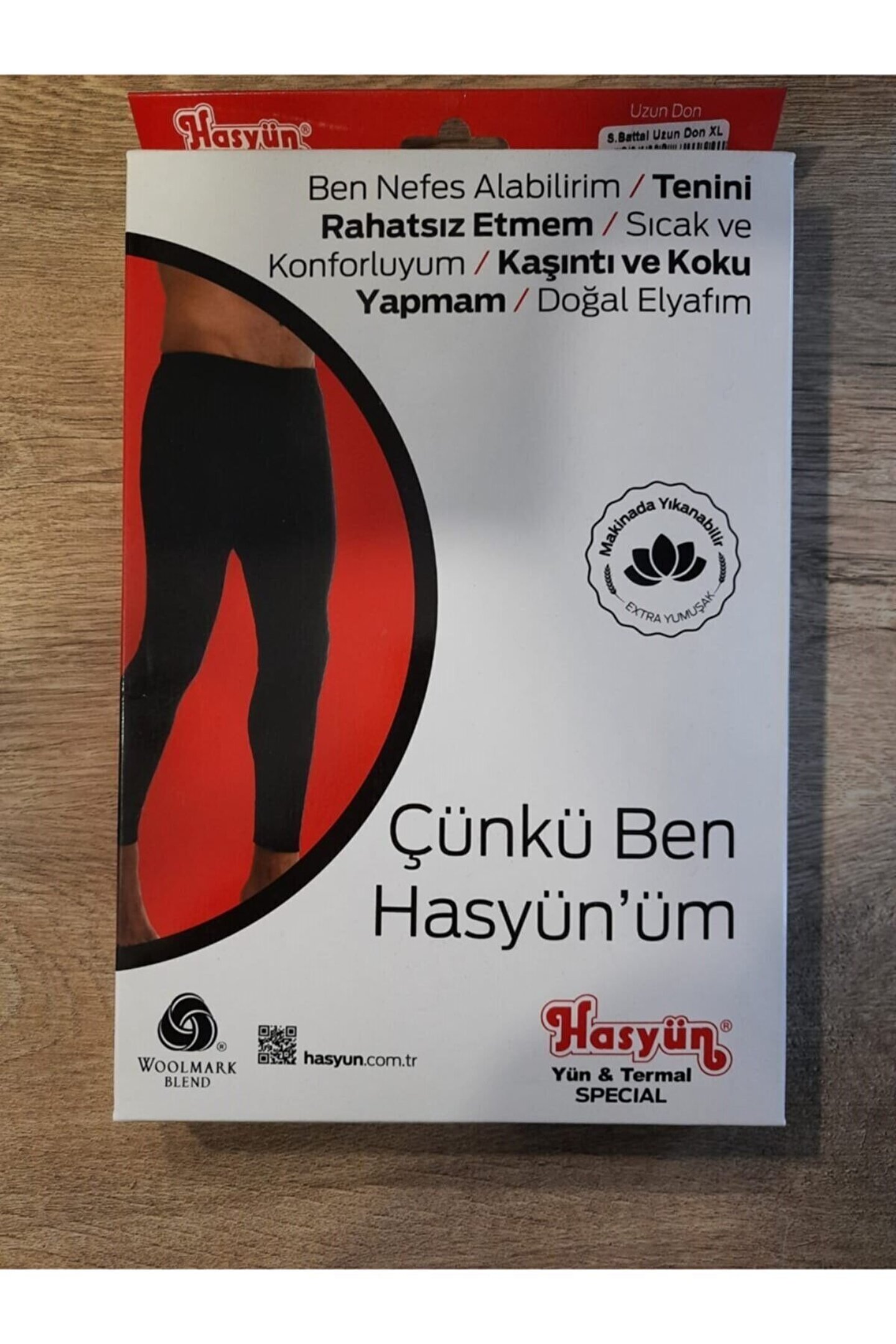Hasyün Erkek Siyah Doğal Termal Uzun Don