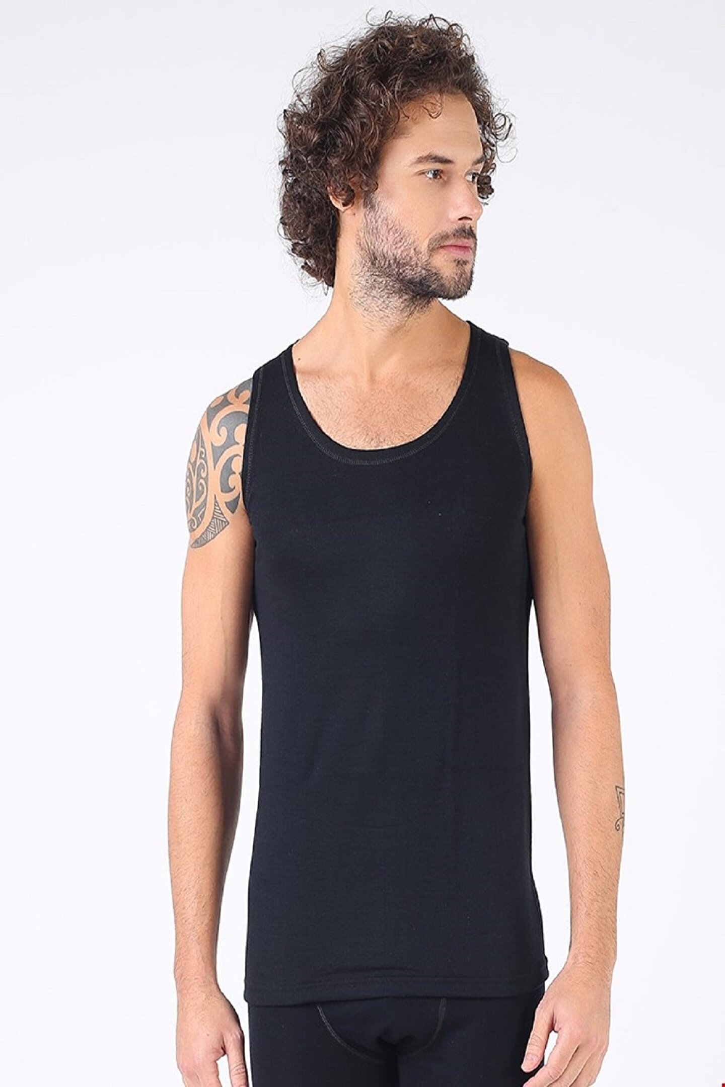 Hasyün Erkek Siyah Yün Askılı Atlet