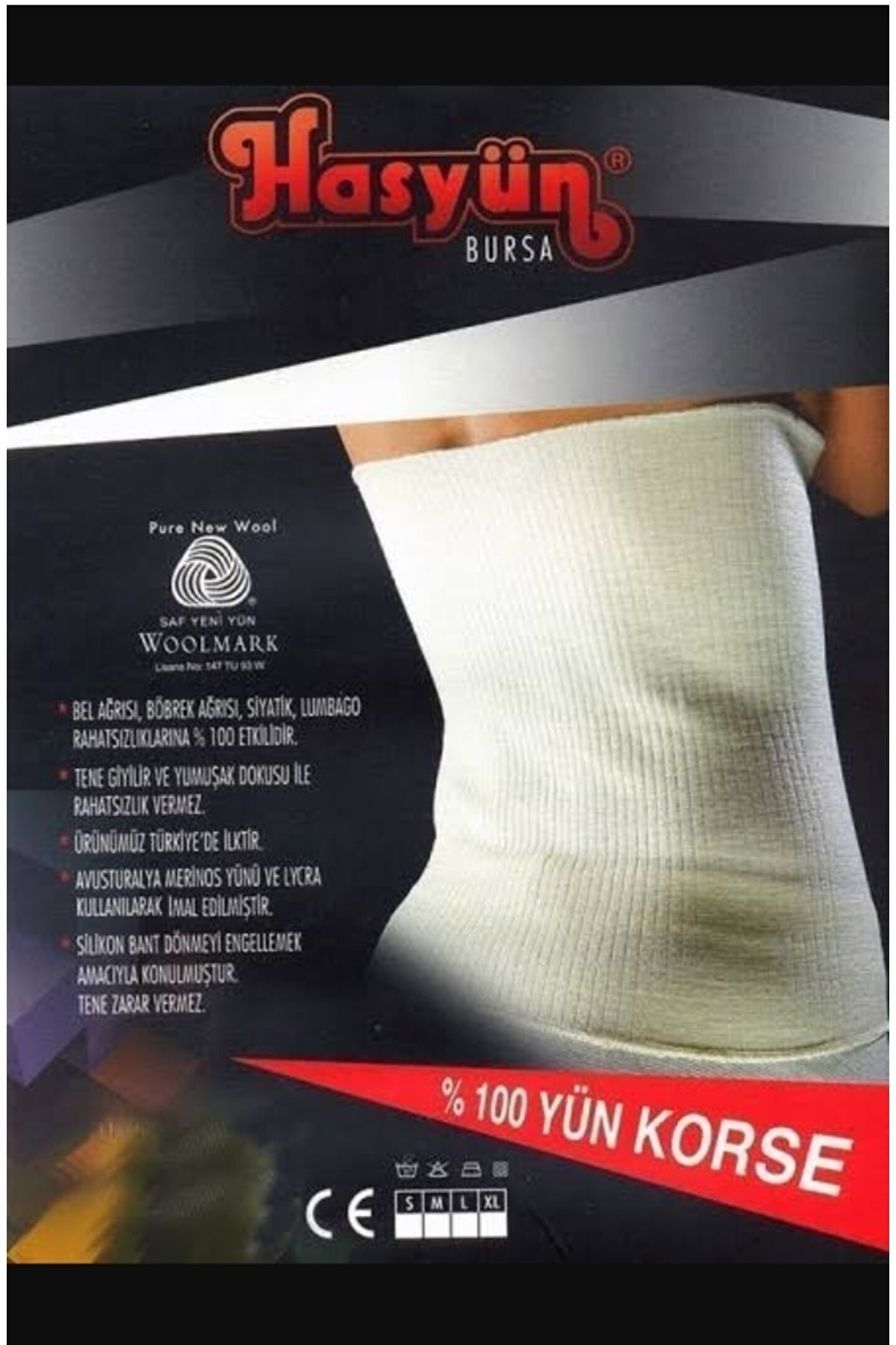 Hasyün Modatime %100 Yün Silikonlu Bel Korsesi Romatizma Menisküs Bel Fıtığı Korsesi