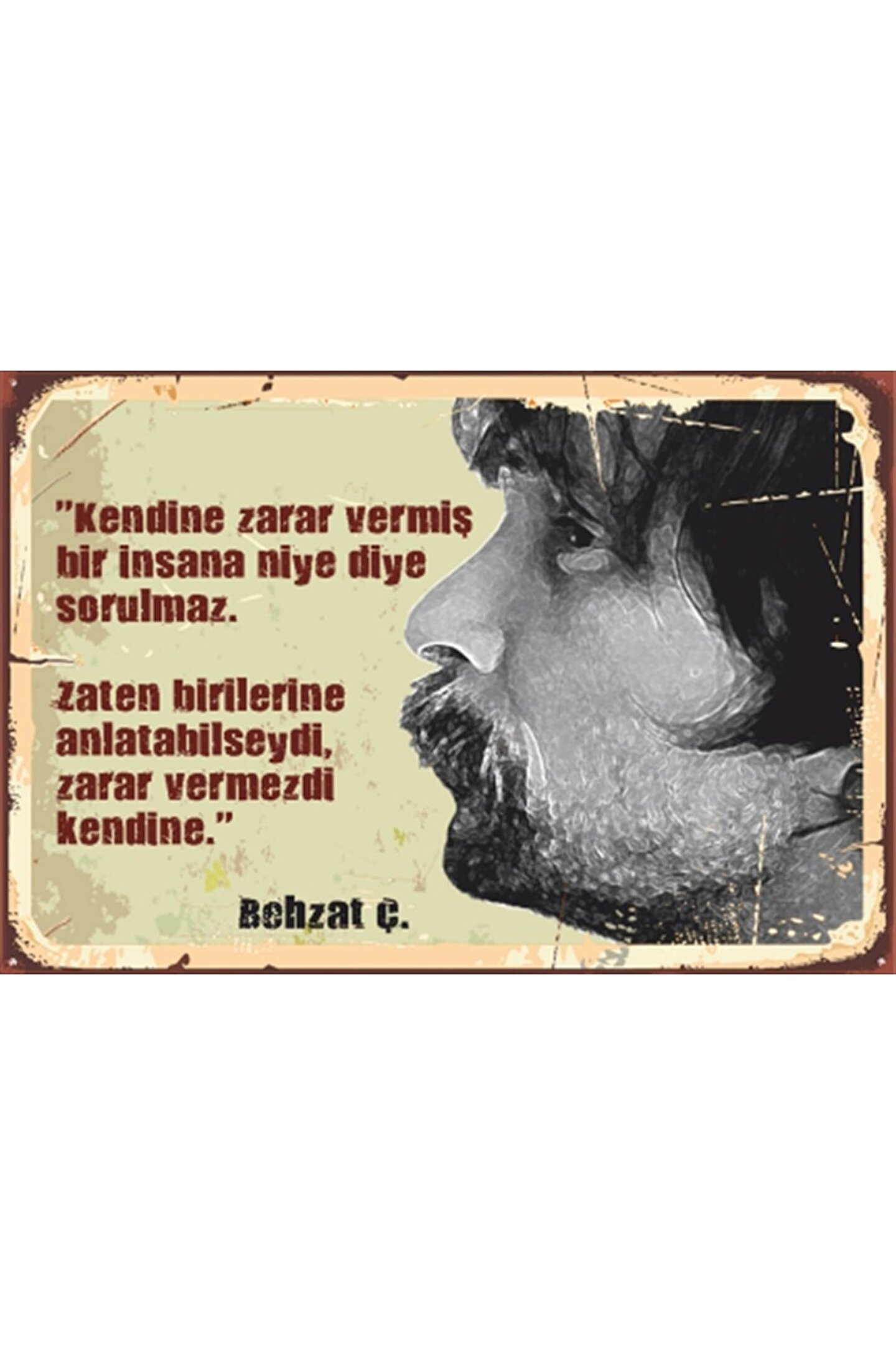 Retro tasarımıyla dikkat çeken Behzat Ç; sözleri ahşap poster, mekanınıza nostaljik bir hava katıyor; Doğal ahşap malzemesiyle hem dayanıklı hem de estetik bir görünüm sunuyor; Tek parça halinde gelen bu tablo, kolay montaj avantajı ile hemen kullanıma hazır;