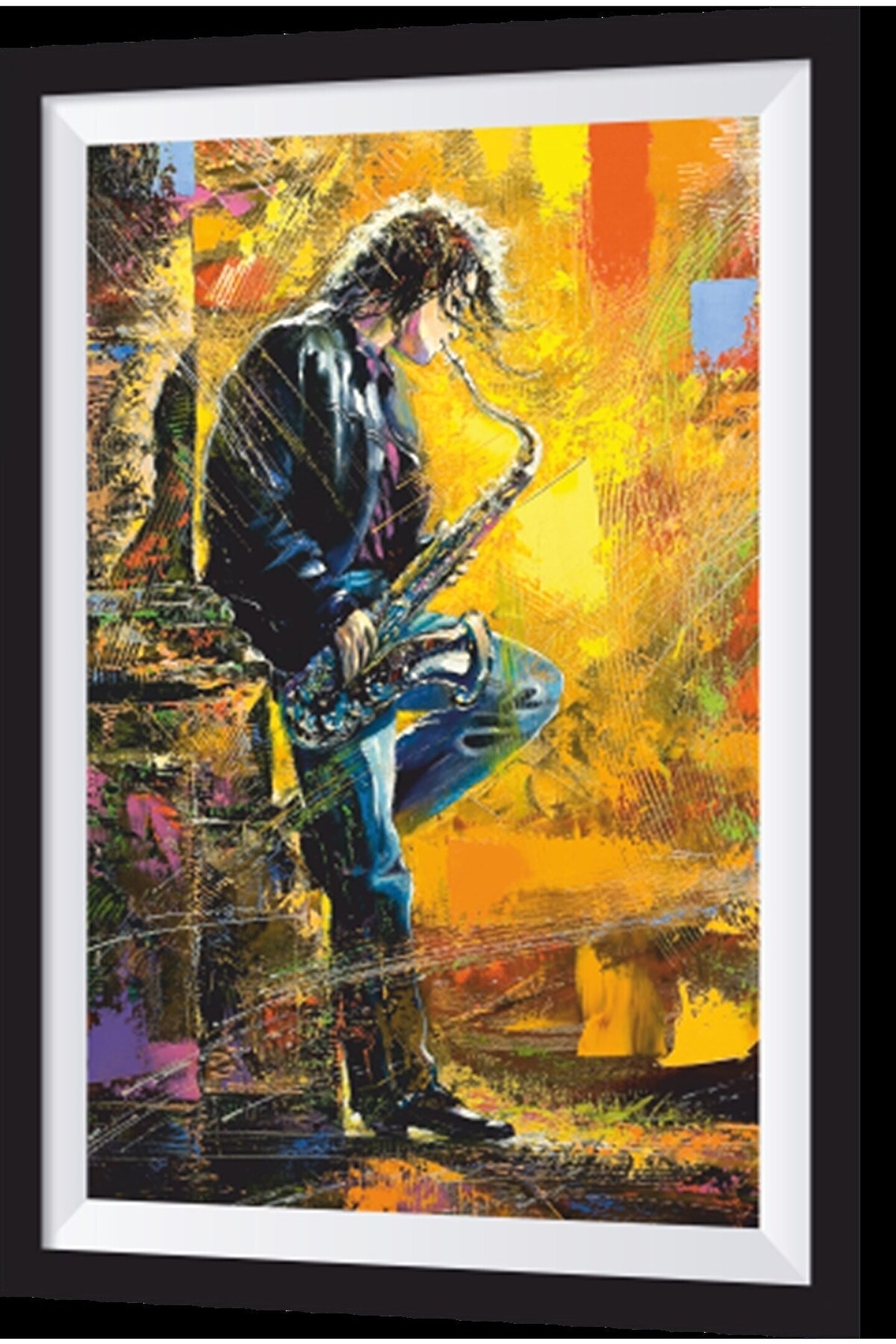 Cesur sanat temalı tasarımıyla dikkat çeken bu ahşap tablo, saksafon çalan genç bir sanatçının özgün ve sanatsal ruhunu yansıtır; Tek parça halinde gelen bu eser, mekanınıza kolayca uyum sağlayacak şekilde tasarlanmıştır; Doğal ahşap materyali ile hem dayanıklı hem de estetik bir görünüm sunar;