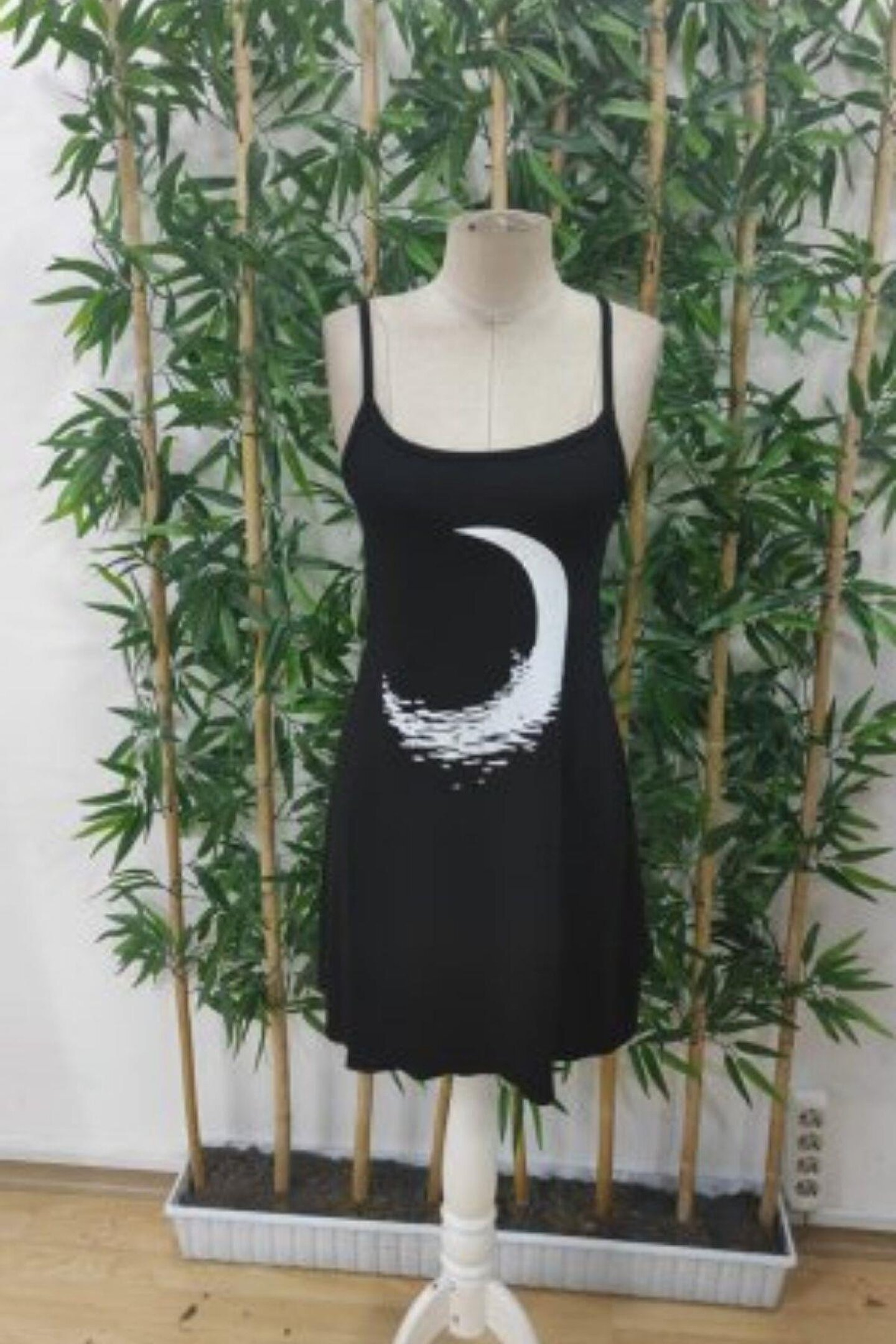 Kadın Ip Askılı Ay Desenli Viskon Elbise