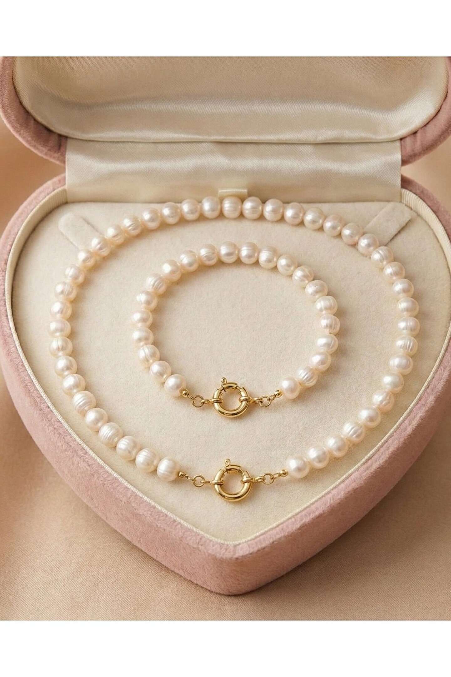 Gerçek İncidir Set içeriği kolye + bilekliktir Kolye uzunluğu 50 cm Bileklik 17 cm dir