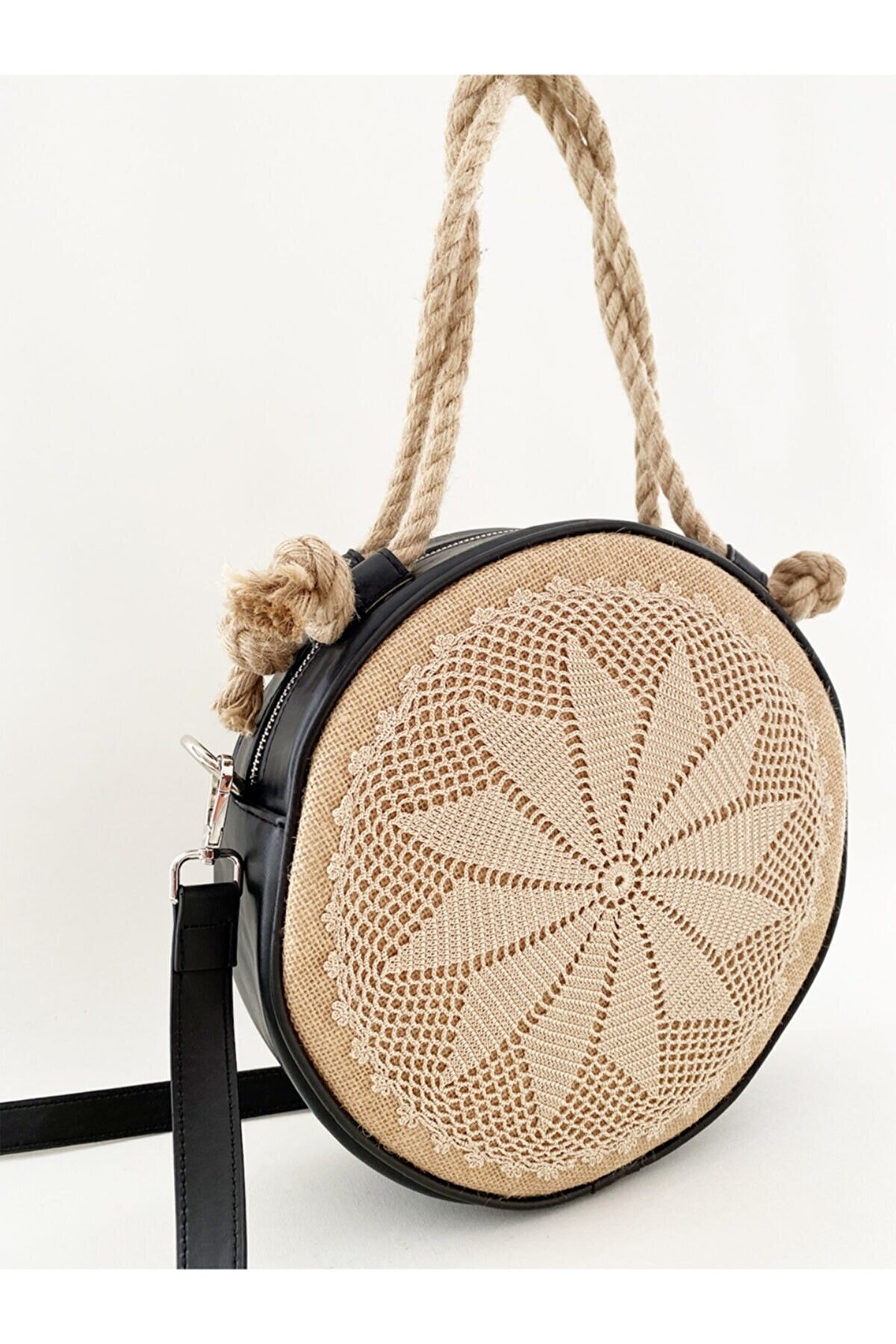 Heybes Kadın El Yapımı Dantel Detaylı Yuvarlak Hasır Omuz Çantası; El emeği göz nuru: Her bir dantel detayı, özenle seçilmiş ve özenle işlenmiş, her bir dantel parçası el yapımıdır.; Zarif tasarım: Yuvarlak formu ve dantel detaylarıyla, bu omuz çantası şıklığınızı tamamlar ve zarif bir görünüm sunar.; Dayanıklı tekstil materyali: Yüksek kaliteli tekstil malzemeden üretilmiş olup, uzun süreli kullanım için idealdir.; Çok yönlü kullanım.;Günlük kullanımın yanı sıra özel günlerde de tercih edebileceğiniz bu çanta, her ortama uyum sağlar.;