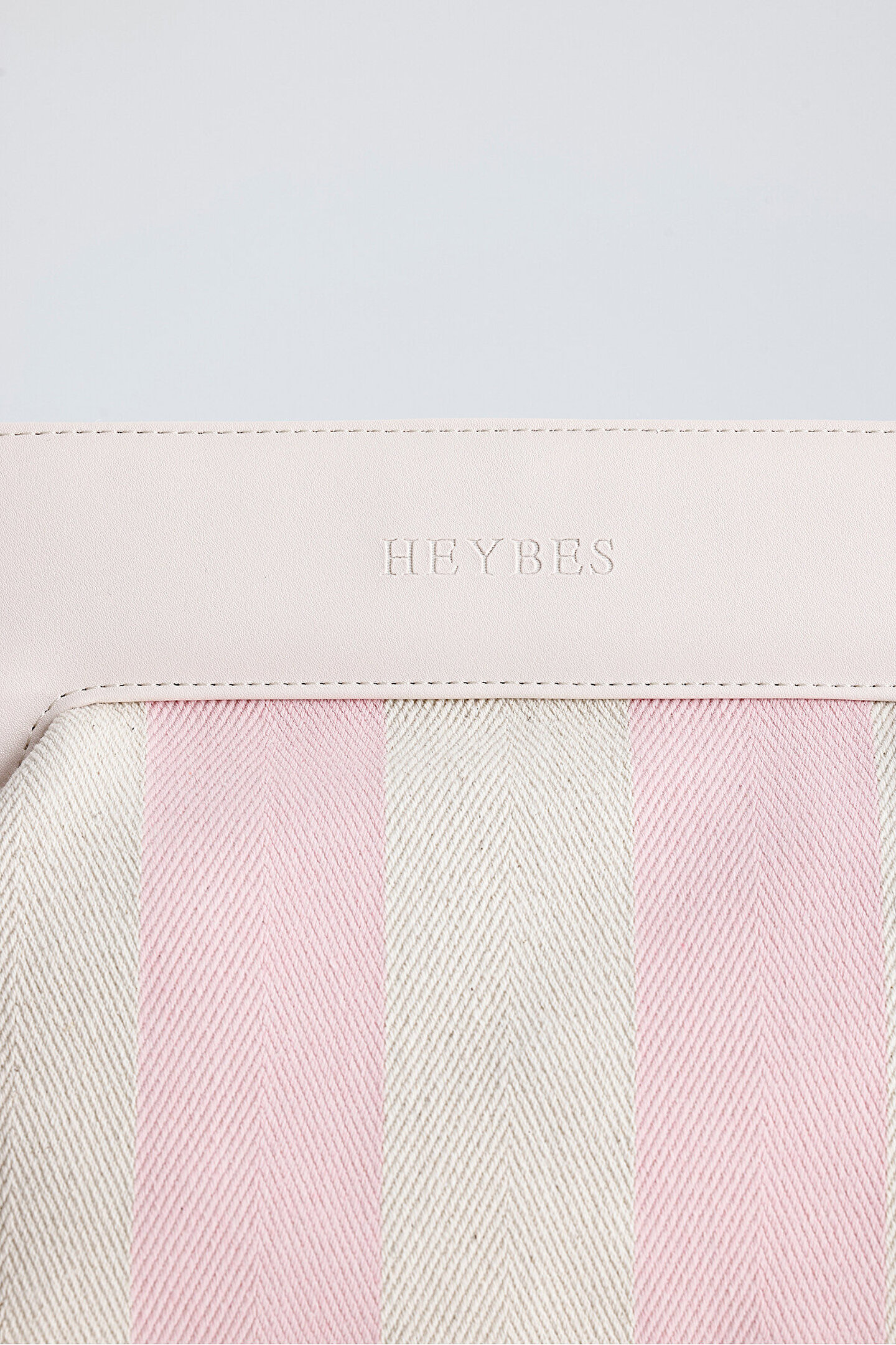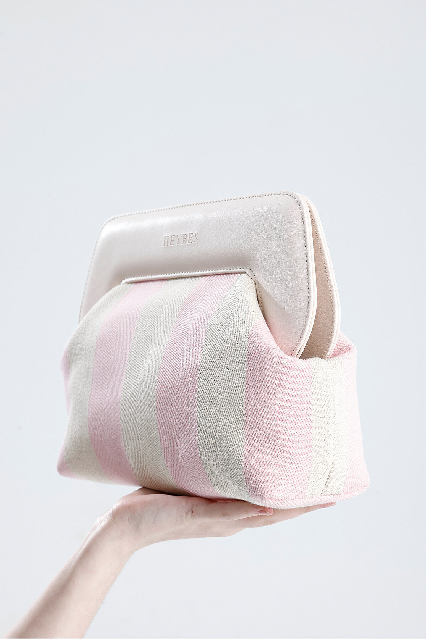 Heybes Kadın Pembe Çizgi Desenli Kanvas Clutch El Çantası; Göz alıcı çizgi desenleriyle öne çıkan bu clutch çanta, günlük kullanımda şıklığınızı tamamlar.; Çizgi desenli dokuma kanvas kumaştan, özel üretimdir.; Dokuma kumaş yapısı dayanıklılık ve konfor sunarken, tekstil materyali hafif ve rahat bir taşıma deneyimi sağlar.; Vegan deri detayları modern ve zarif bir görünüm kazandırır.; Mıknatıs kapak sistemi pratik kullanım imkânı sunar.; Heybes tarafından özel el işçiliği ile üretilmiştir.; ; İç kısmı astarlıdır ve 1 adet iç cebi bulunmaktadır.; •Gövde: Kanvas Dokuma Kumaş •Çerçeve: Vegan Deri •İç Materyal: Vegan Deri; 34x23x11 cm (Genişlik x Yükseklik x Derinlik) ölçülerindedir.; • İç hacim yükseklik: 16 cm • İç hacim genişlik: 18 cm