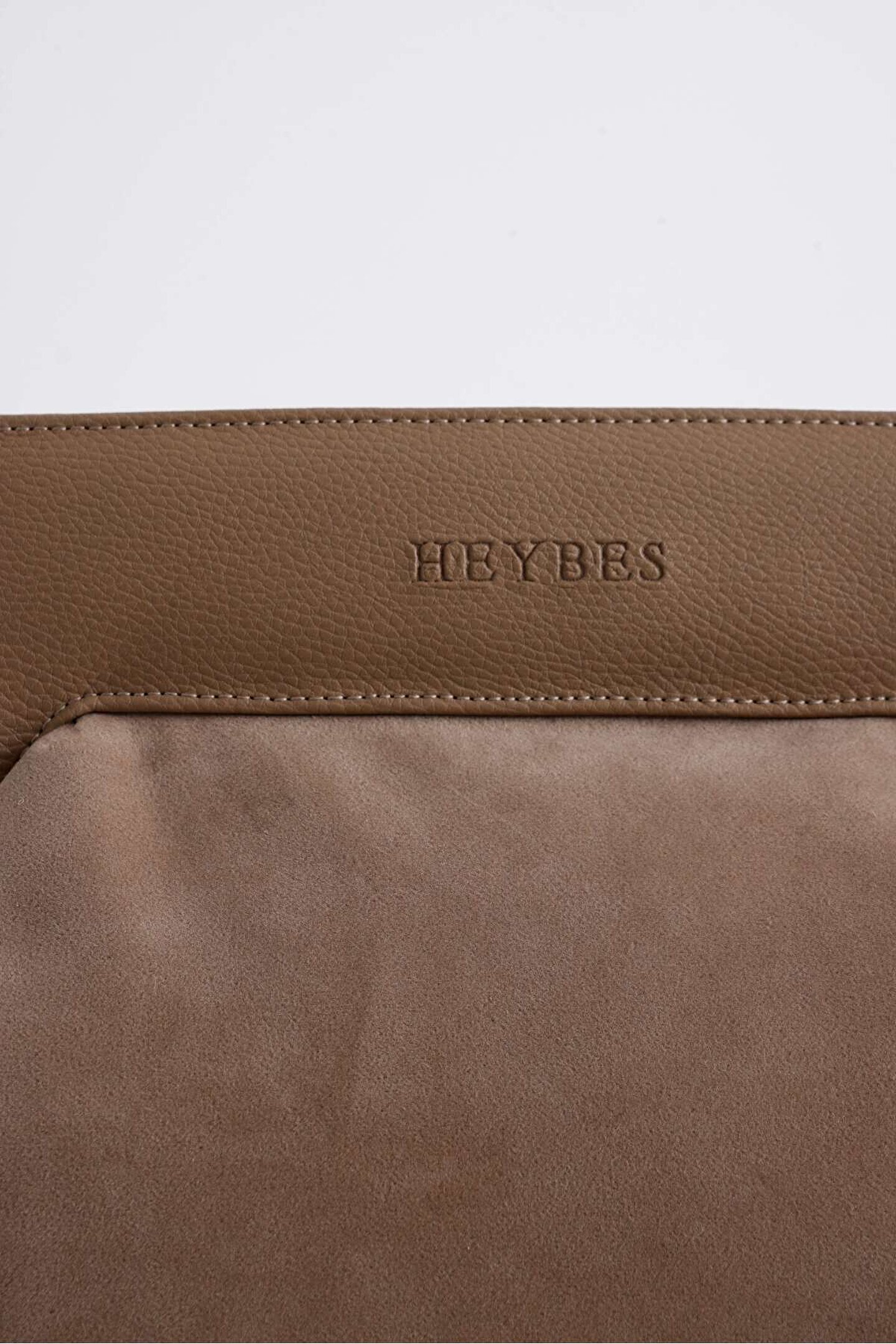 Heybes Kadın Vizon Deri Detaylı Süet Clutch El Çantası; Deri detayları, hem günlük kullanım hem de özel davetlerde şıklığınızı tamamlar.; Yüksek kaliteli süet materyali sayesinde uzun süreli kullanım sunarken, dayanıklılığından ödün vermez.; Vizon renginin asaletini yansıtan bu el çantasıyla kombinlerinizde sofistike bir dokunuş yapabilirsiniz.; T07 yıkama talimatlarına göre kullanarak yıpranmadan uzun yıllar yol arkadaşınız olabilir.; Mıknatıs kapak sistemi pratik kullanım imkânı sunar.; Heybes tarafından özel el işçiliği ile üretilmiştir.; İç kısmı astarlıdır ve 1 adet iç cebi bulunmaktadır.; •Gövde: Dokuma Süet •Çerçeve: Vegan Deri •İç Materyal: Vegan Deri; 34x23x11 cm (Genişlik x Yükseklik x Derinlik) ölçülerindedir.; • İç hacim yükseklik: 16 cm • İç hacim genişlik: 18 cm