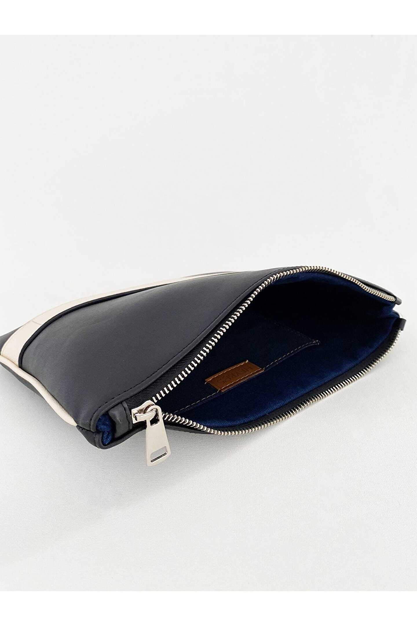 Heybes Siyah Bantlı Portföy Çanta; Minimal ve modern çizgileriyle öne çıkan bu clutch çanta, hem gündüz hem gece kullanımı için zarif bir alternatiftir.; Fermuarlı yapısı sayesinde eşyalarınızı güvenle saklamanızı sağlar.; Heybes tarafından özel el işçiliği ile üretilmiştir.; İç kısmı astarlıdır ve 1 adet iç cebi bulunmaktadır.;•Dış Materyal: Vegan Deri •İç Materyal: Vegan Deri; 26 x 20 cm (Genişlik x Yükseklik) ölçülerindedir.