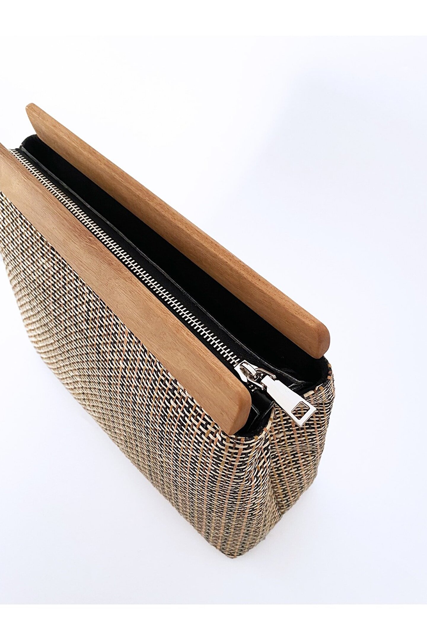 Şık ve modern tasarımıyla dikkat çeken çizgili deseni, her türlü kıyafetle kolayca uyum sağlar; Doğal jüt hasır materyali sayesinde dayanıklılık ve uzun ömürlü kullanım sunar; Tekstil yapısı, hafifliği ve rahat taşıma imkanı sağlar; günlük kullanım için idealdir; Ahşap detayları ile zenginleştirilmiş tasarım, çantanın estetik görünümünü artırırken aynı zamanda doğallığı ön plana çıkarır;
