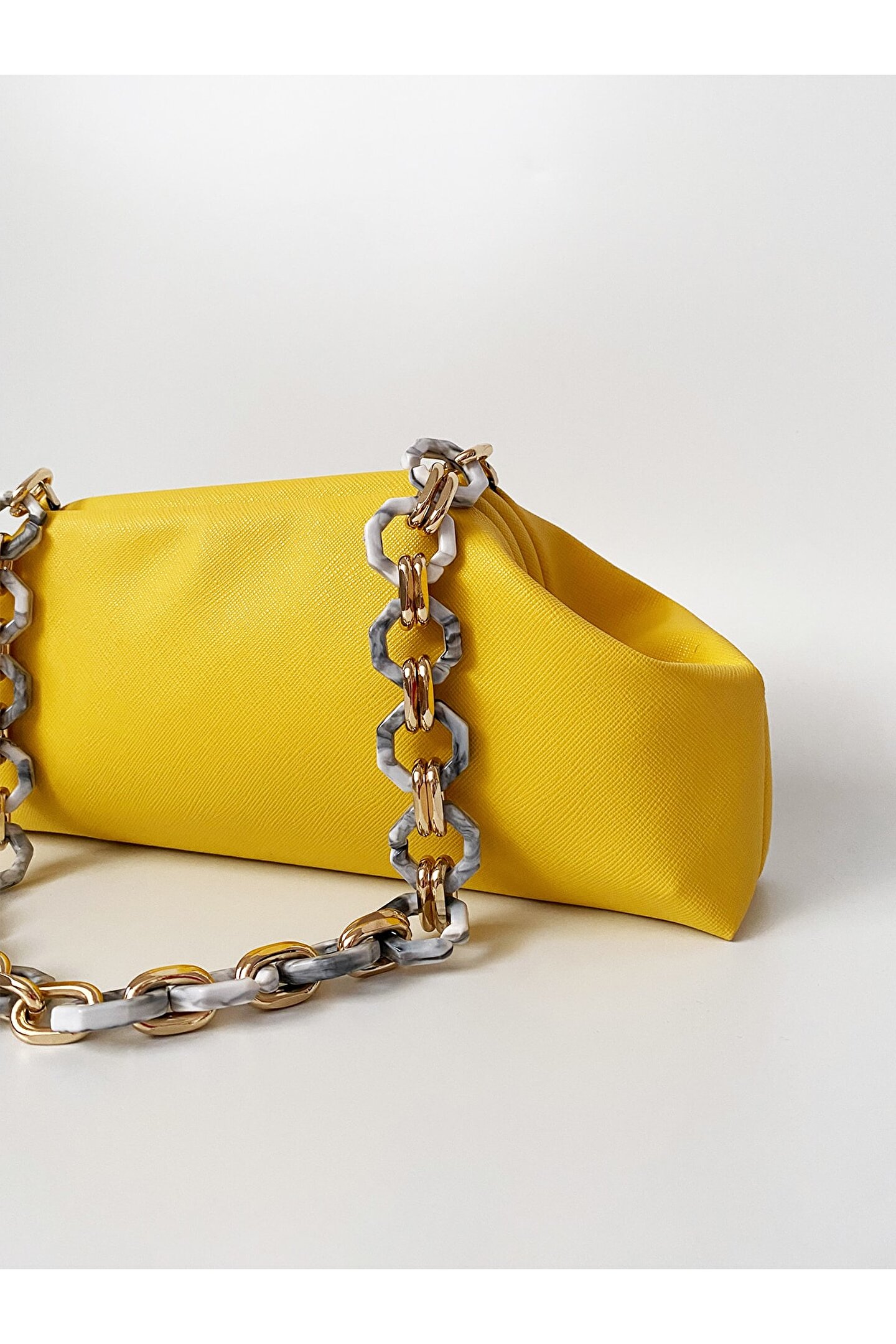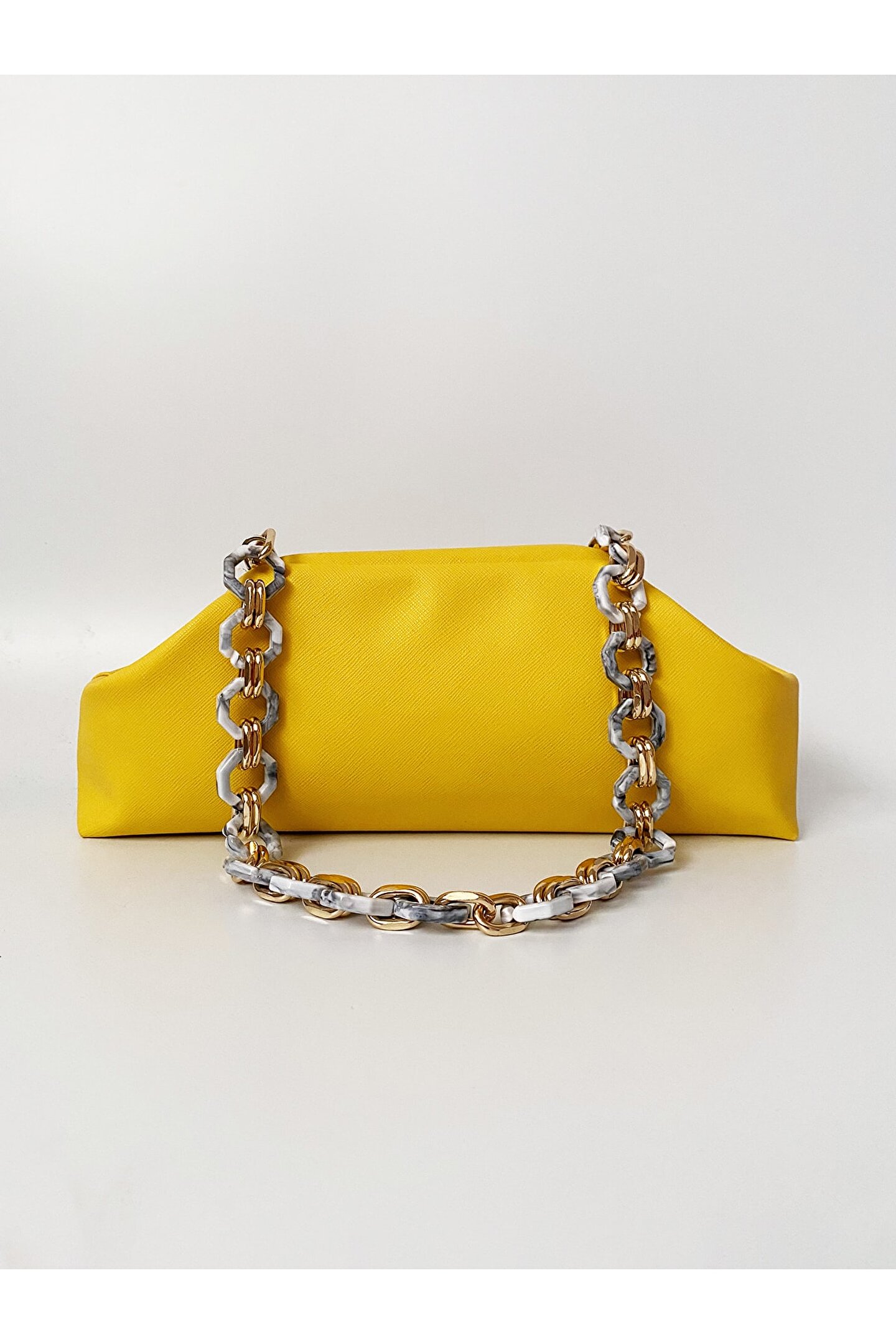HEYBE‘S Kadın Sarı Zincirli Baget Omuz Çantası