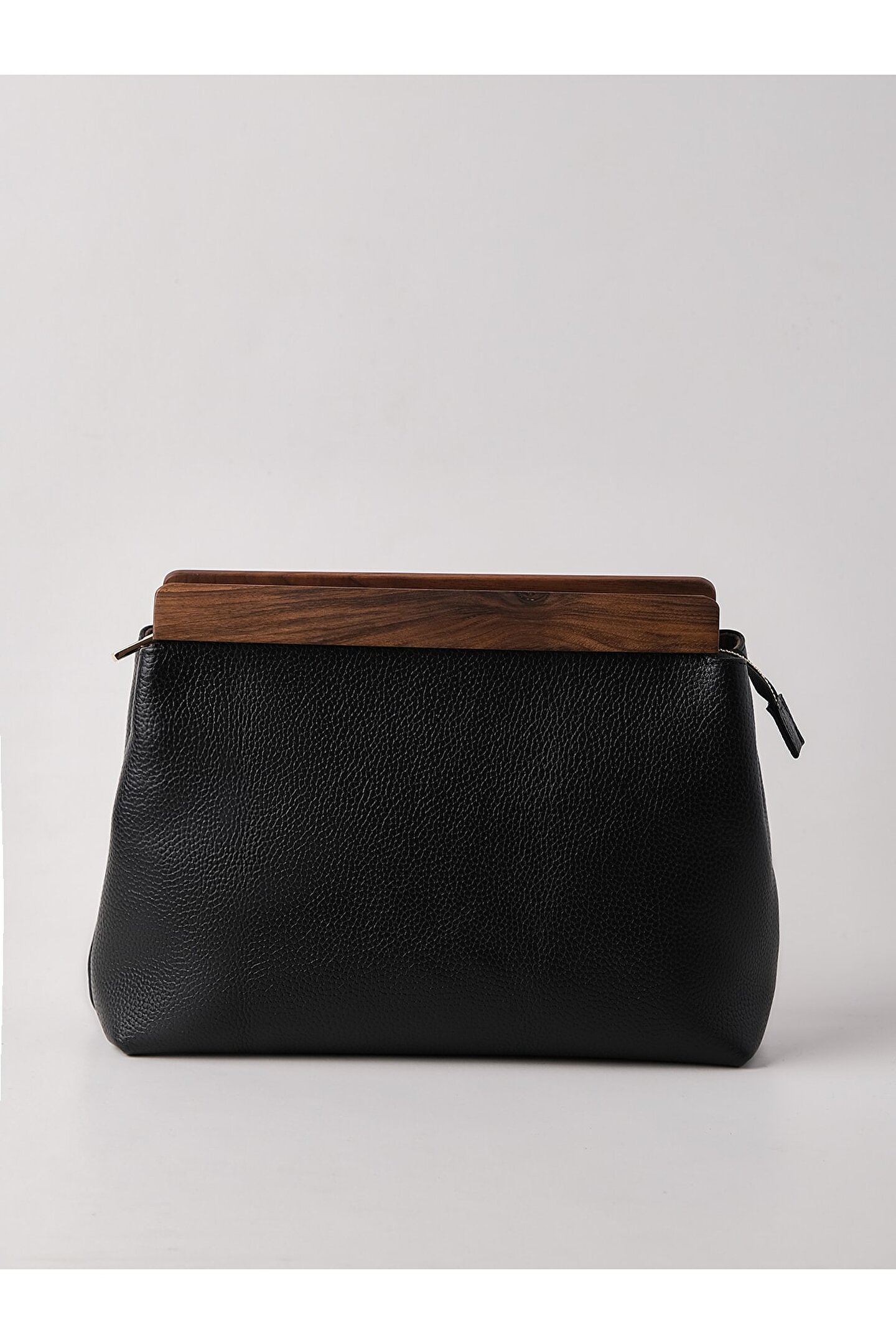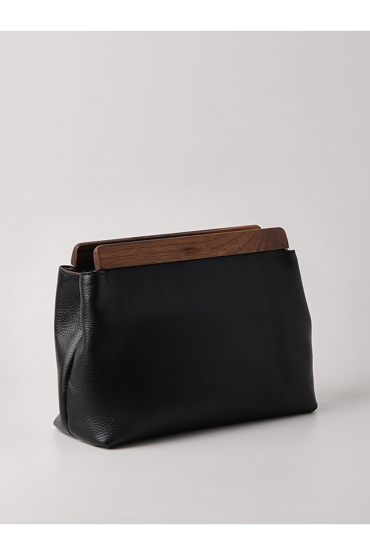 Yüksek kaliteli hakiki deri malzemesi, uzun ömürlü kullanım ve şık bir görünüm sunar; Gerçek deri kalitesi, dayanıklılığı artırarak çantanın formunu korumasına yardımcı olur; Siyah renk seçeneği, her türlü kıyafetle kolayca uyum sağlar ve zamansız bir stil oluşturur; Ahşap aksesuar detayları, modern ve sofistike bir dokunuş katarken, el yapımı işçiliği ön plana çıkarır; Clutch çanta tasarımı, küçük eşyalarınızı güvenle taşımanız için idealdir ve günlük kullanım için uygundur;