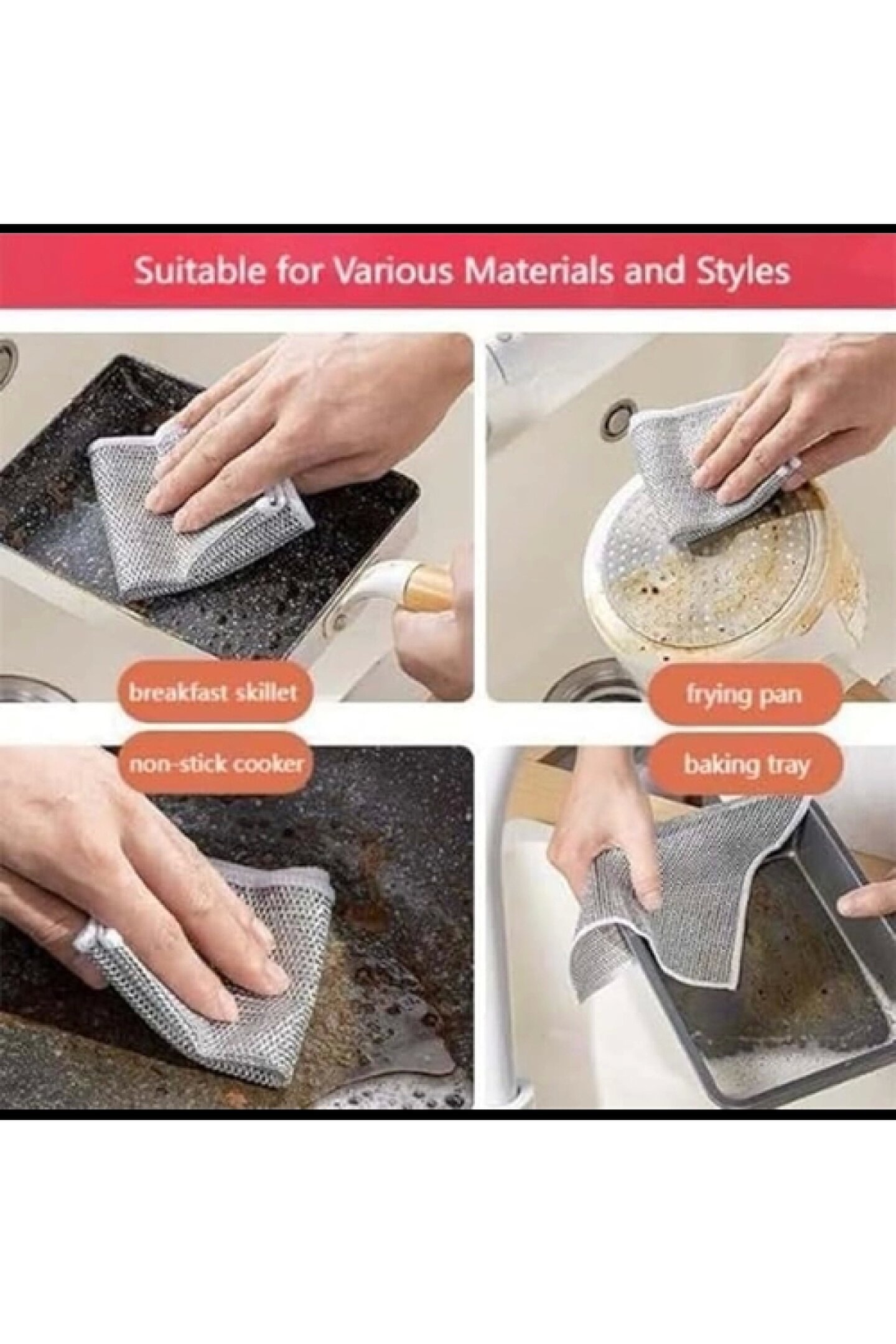 Aveo 1 Adet Ince Telli Tek Kat Bulaşık Bezi Yağ Kir Sökücü Bez Tel Çizmez Bulaşık Teli Naylon Ovma Malzeme: Naylon Renk: Alüminyum rengi Boyut: 20 cm x 20 cm Kullanım Alanları: Tencere, tava ve zorlu bulaşıkların temizliği için ideal Özellikler: Çizik yapmaz, çok yönlü kullanım sağlar Uygulama Alanları: Tezgahlar, gümüş eşyalar, fayanslar, yağlı ve kirli yüzeyler için uygundur.; Bu ince telli bulaşık bezi, naylon malzemesi ve özel tasarımıyla çizik yapmadan zorlu bulaşıkların temizliğine yardımcı olur.; Alüminyum rengi görünümüyle şık bir görünüme sahiptir.; Boyutlarıyla elinize rahatça oturur ve kullanımı kolaydır.; Çeşitli yüzeylerde kullanılabilen bu bez, tezgahlar, gümüş eşyalar, fayanslar ve yağlı/kirli yüzeyler için idealdir.; Paket İçeriği: 1 adet Tek Kat tencere tava ovma bezi