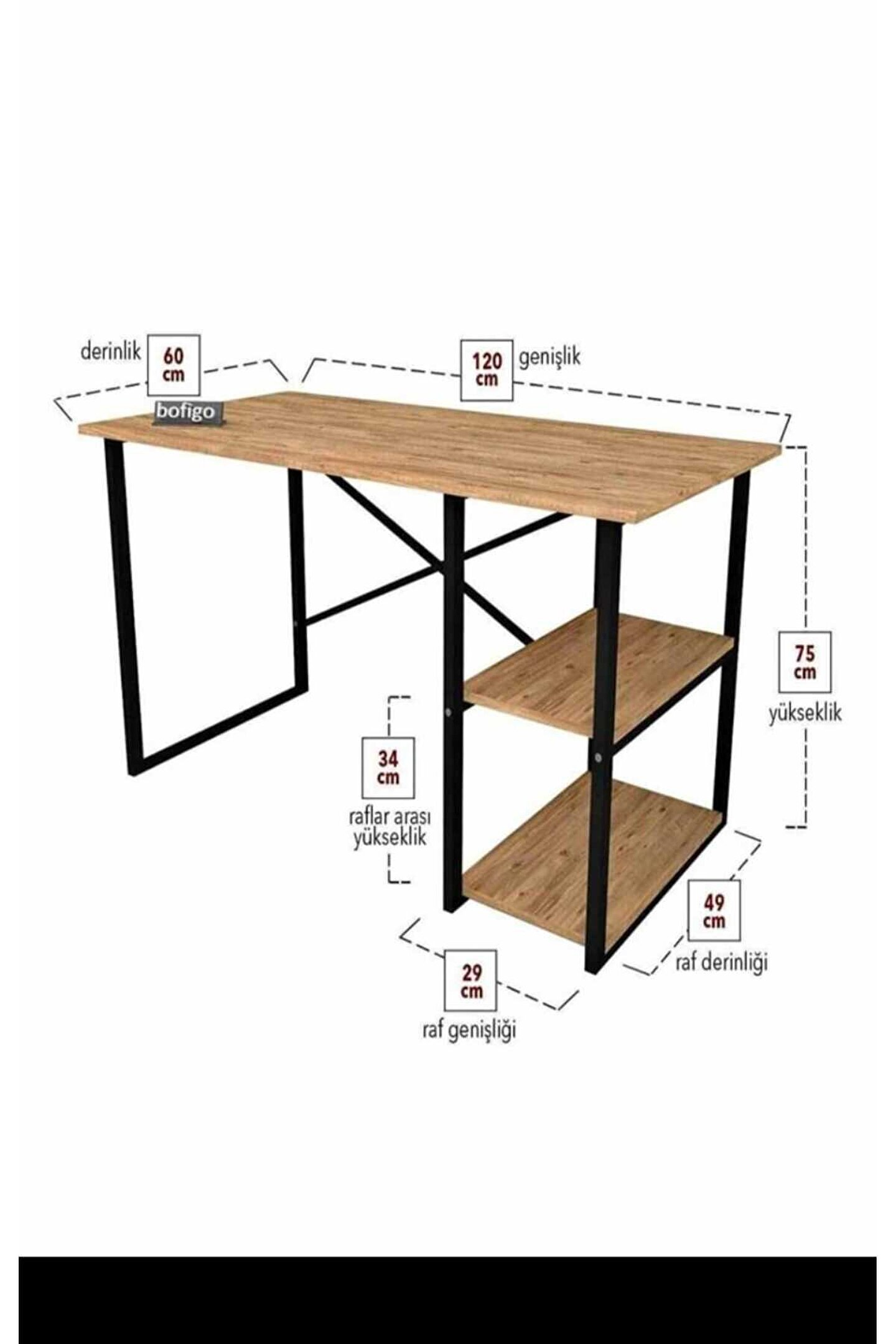 CEVİZ renk // Suntalam Çalışma masası // Metal ayaklı // Çift Raflı // 120x60 ÇALIŞMA MASASI (Yükseklik 75 cm)