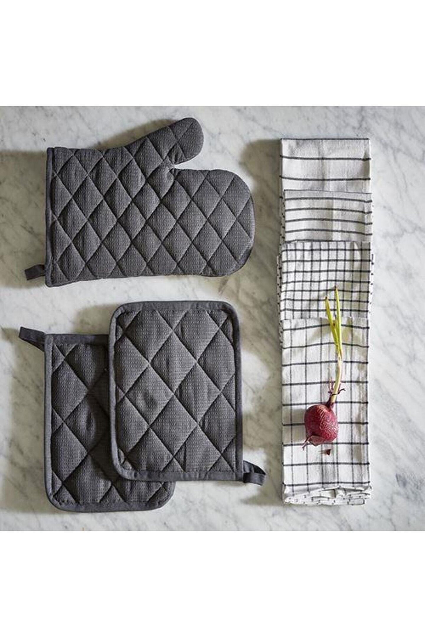 Aradaki keçeli polyester tabaka ısı yalıtımı sağlar. ; Not: Eldiven ürün teklidir. ; Ekstra satın alınan tutacak ikilidir. ; Sağ ve sol elini kullananlar için uygundur. ; Maksimum çekme payı %4. ; Makinede yıkanır, maks 60°C, normal program. ; Çamaşır suyu kullanılmaz. ; Makinede kurutulmaz. ; Ütülenebilir, maks 200°C. ; Kuru temizleme yapılmaz. ; Islak olduğunda genişler. ; Malzeme: Kumaş/ İç kumaş:%100 pamuk Dolgu:%100 polyester (en az %70'i geri dönüştürülmüştür) Koruma tabakası:%100 polyester (%100 geri dönüşümlü);