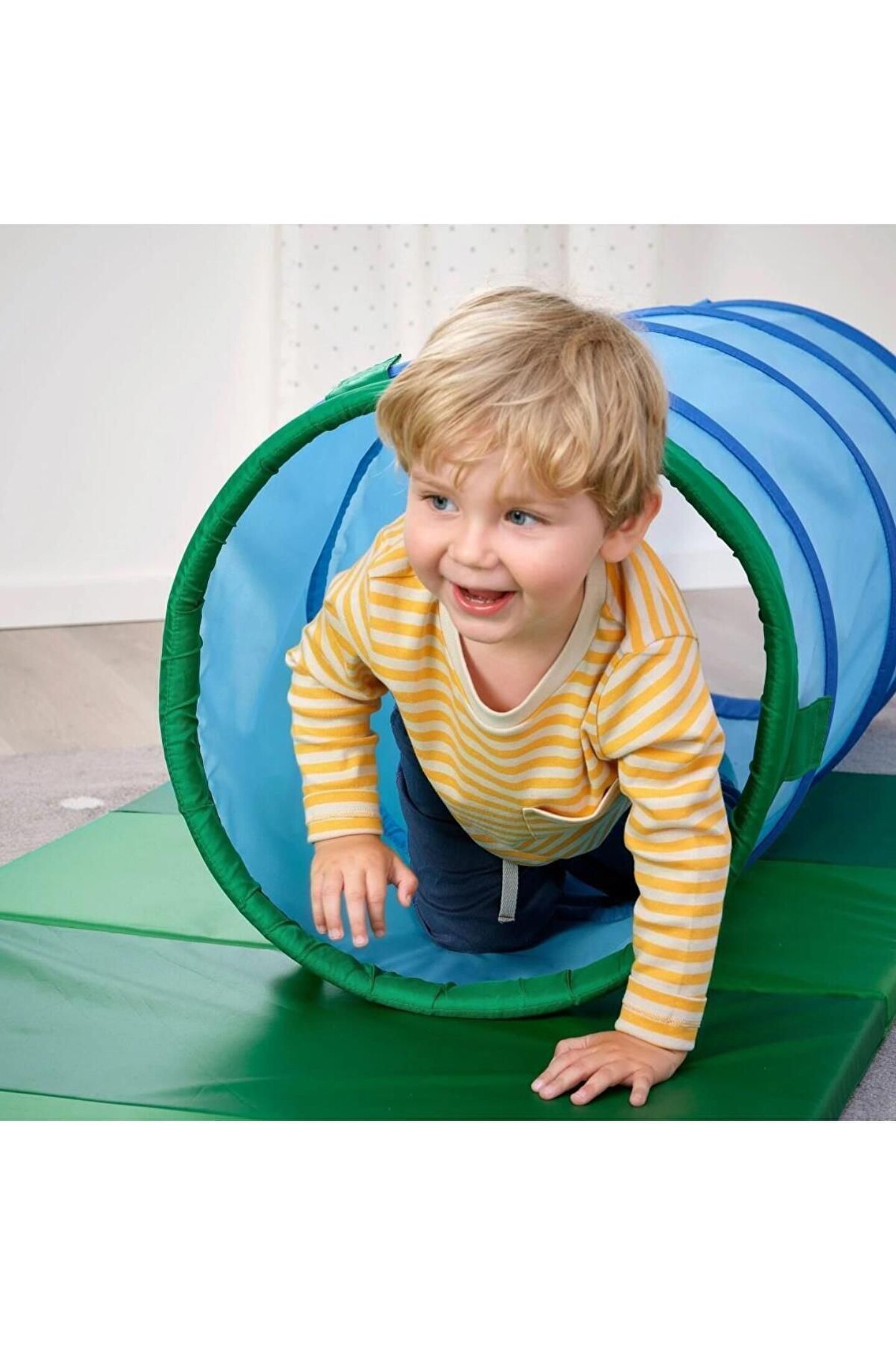 Tünelin içinde saklanmak ve diğer ucunda ne beklediğini keşfetmek heyecan verici bir maceradır.; ; Anne veya babadan daha hızlı sürünerek onları geçebilirsin - onlar her zaman ortada bir yere takılıp kalacaktır.; ; Montaj gerekmez,kullanması kolay.; ; Kullanılmadığında yer kazanmak için bastırarak katlanır.; ; Dokun ve kapat bağlantıları, tüneli saklarken bir arada tutar ve birkaç tüneli bağlamak için de kullanılabilir.; ; Fiziksel olarak aktif olmak, çocuğunuzun yaşam için sağlıklı bir alışkanlık oluştururken motor becerilerini ve koordinasyonunu geliştirmesine yardımcı olur.; ; Çocuklarla işbirliği içinde, düşünce ve fikirlerini ifade ettikleri eğlenceli oturumlarda tasarlandı.; ; Onların görüşleri bizim için çok önemli ve bu sayede ürünlerimizi daha iyi tasarlıyoruz.; ; Nihayetinde uzman olan onlar.; ; 18 aydan büyük çocuklar için tavsiye edilmiştir.; ; Bu ürün CE işareti taşımaktadır.; ; DVÄRGMÅS çocuk çadırı ile tamamlanabilir.; ; Bakım Talimatları Elde yıkanır, maks 40°C.; ; Çamaşır suyu kullanılmaz.; ; Makinede kurutulmaz.; ; Ütülenmez.; ; Kuru temizleme yapılmaz.; ; Malzeme Kumaş:%100 polyester (en az %90'ı geri dönüştürülmüştür) Tüp:Polietilen plastik Dolgu:Polietilen sünger Teyp:%100 naylon Ebatlar Çap: 45 cm Uzunluk: 126 cm Ağırlık: 1.03 kg;