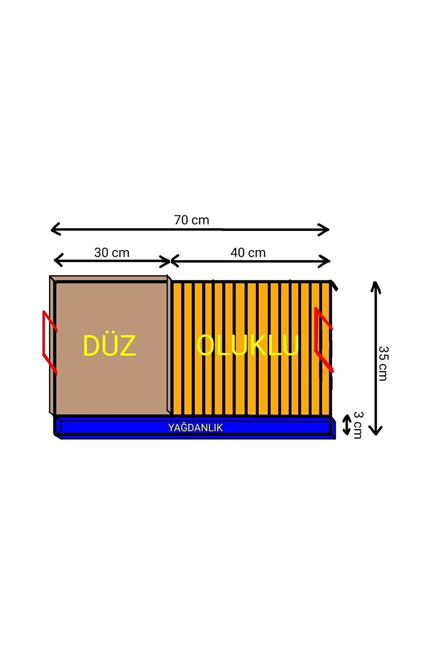 bu ürün sadece tek parça ızgaradır alt kömür kasası yoktur. 35x70 ölçüsünde İstediğiniz ölçüye göre yapabiliriz soru sor kısmından yazabilirsiniz Oluklu ızgara kısmı 40x33 Saç tava kısmı 30x33 Yağdanlık 3cm Izgaralar 2 mm Saç tava 1,5 mm kalınlığında ağırlığı net 5 kg dır