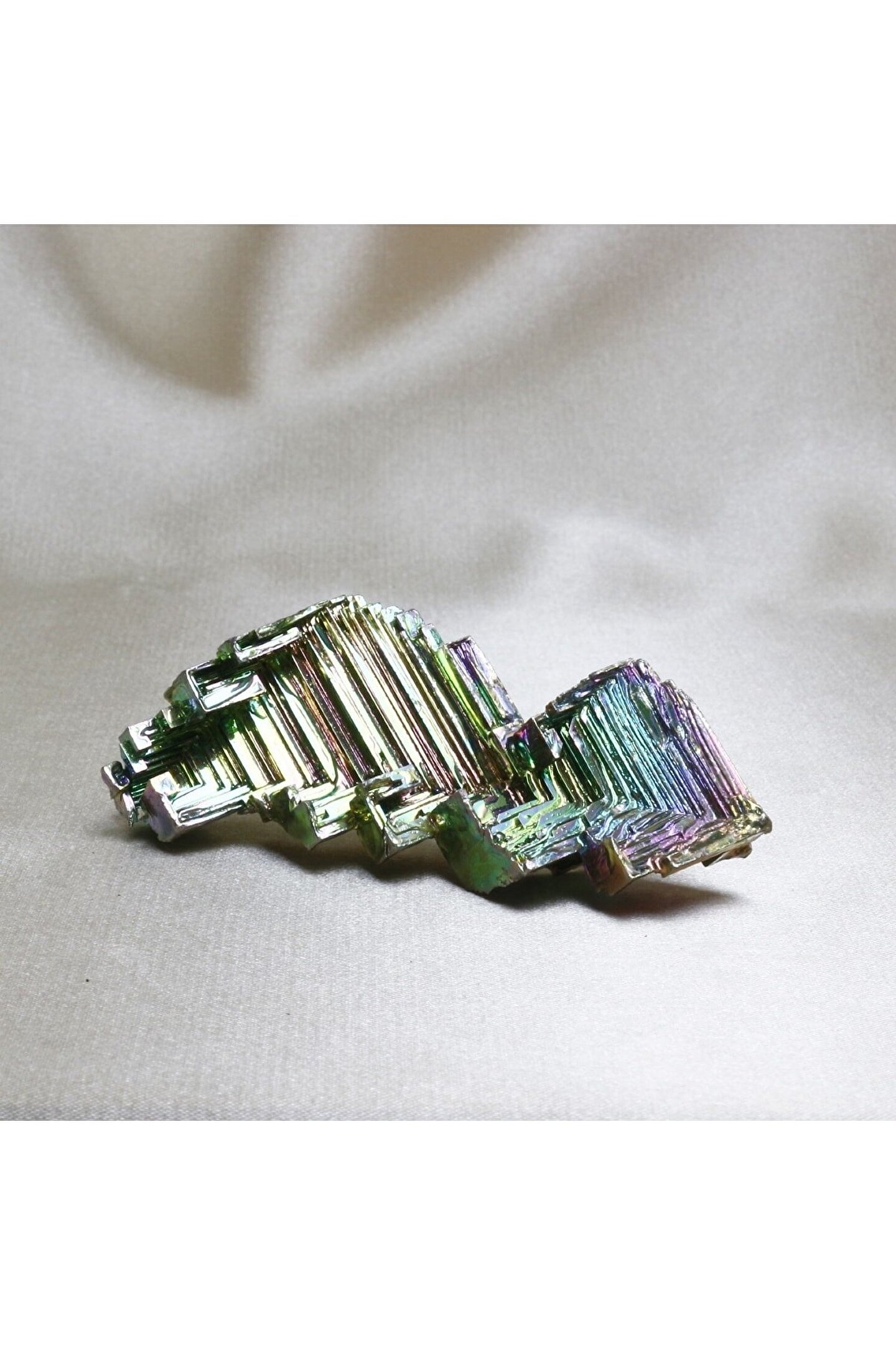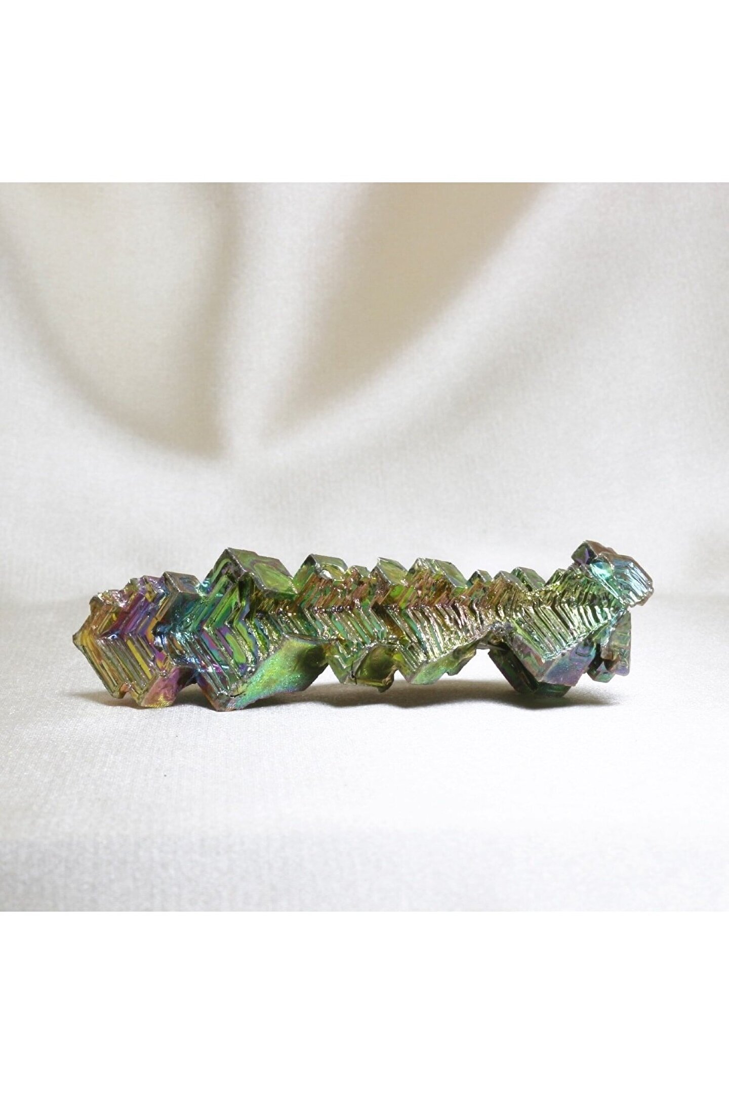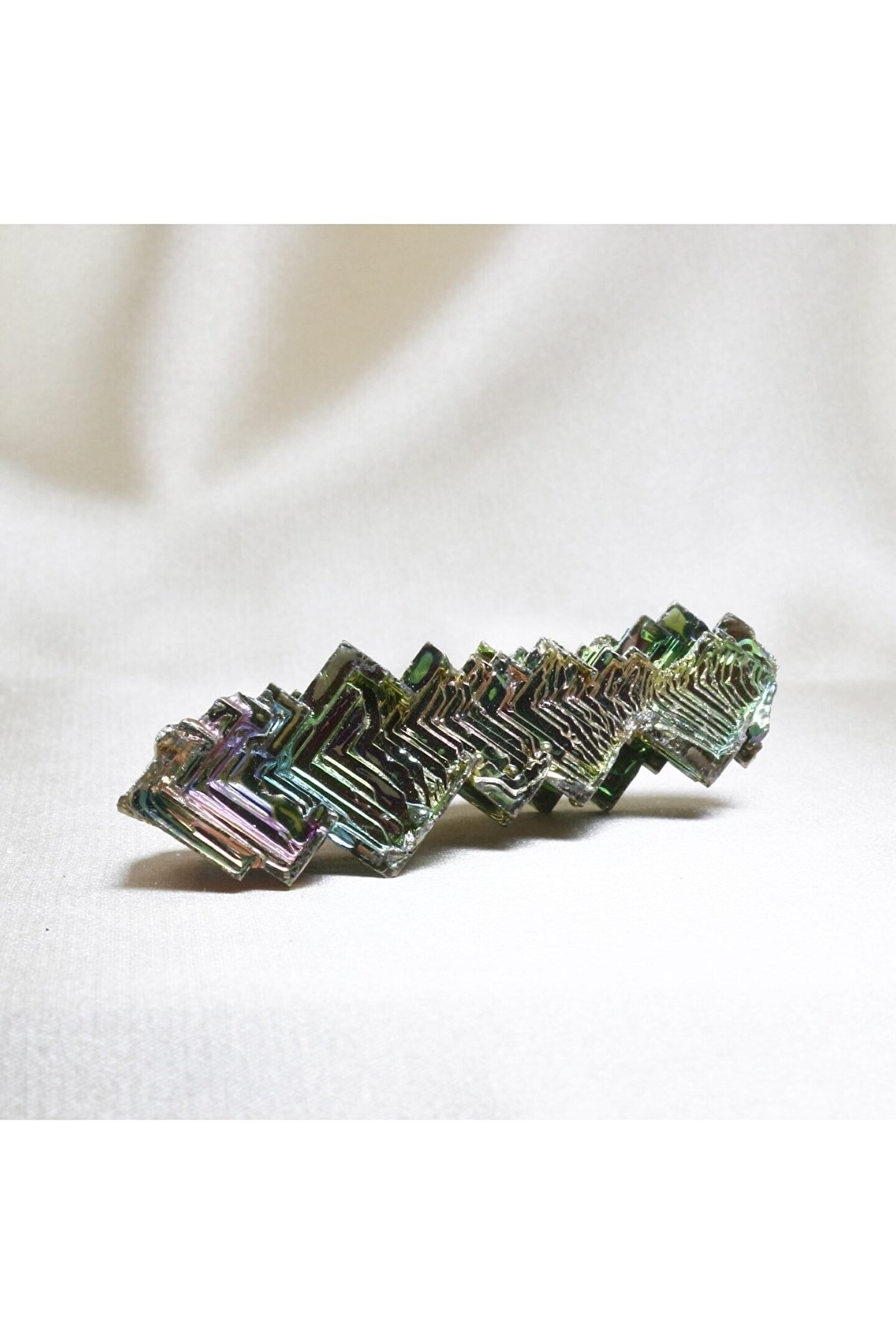 Bizmut, Periyodik Tablodan sürpriz bir misafir! Bizmut Kristali Kimya derslerinde sıkça gördüğümüz Periyodik Tablonun 83 numaralı elementi Bizmut 'tan (Bi) oluşur. ; Dünyadaki en ilginç elementlerden biridir. ; Öncelikle görsel bir şölene hazır olmak şart! Bizmut Kristali renkleri ve ilginç şekilleriyle farkını gösterecek, size de bu görsel şölenin keyfini sürmek kalacak. ; Doğal Taş boyutları 7 x 2,5 x 2 cm Toplam ağırlık 52,5 gr.;