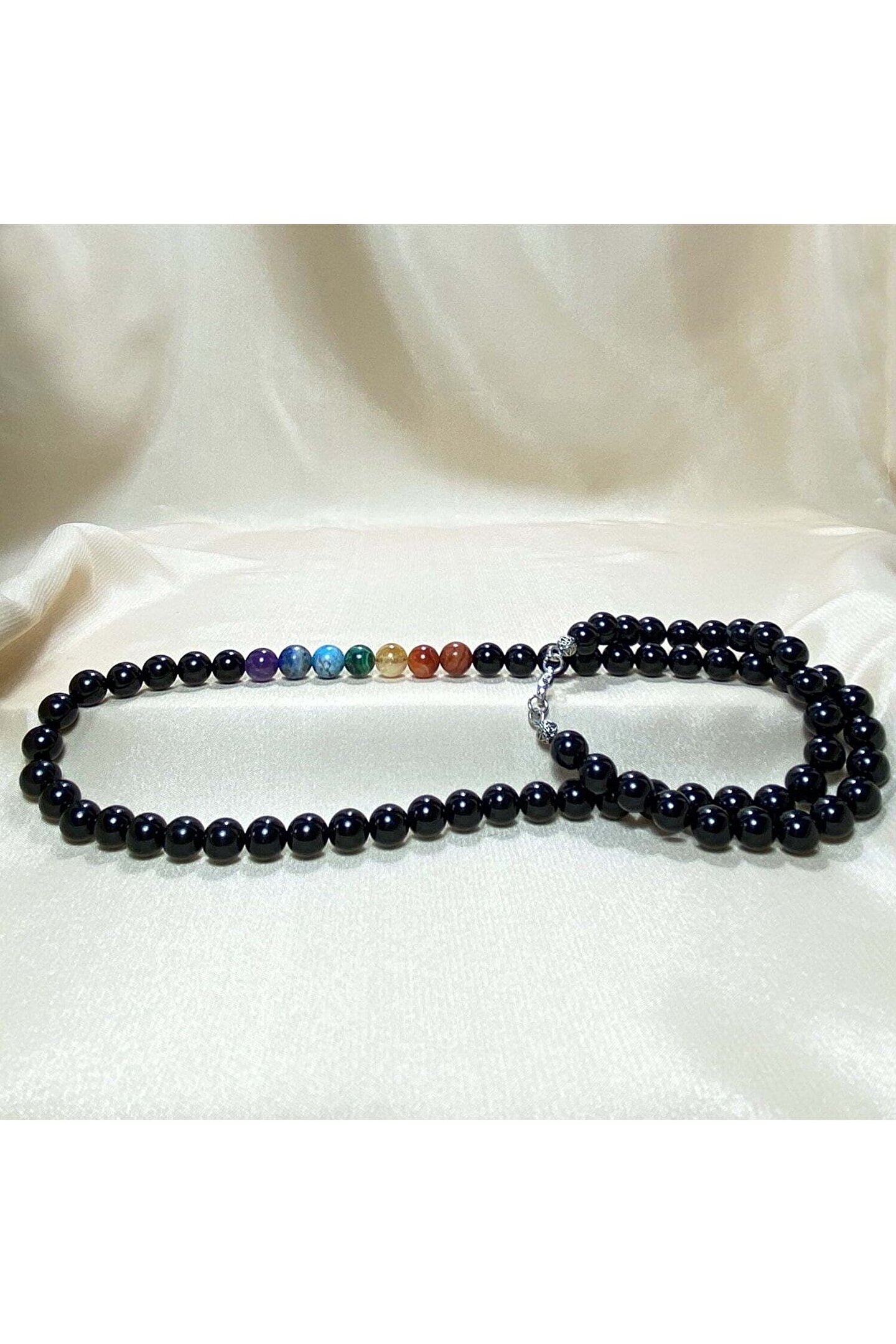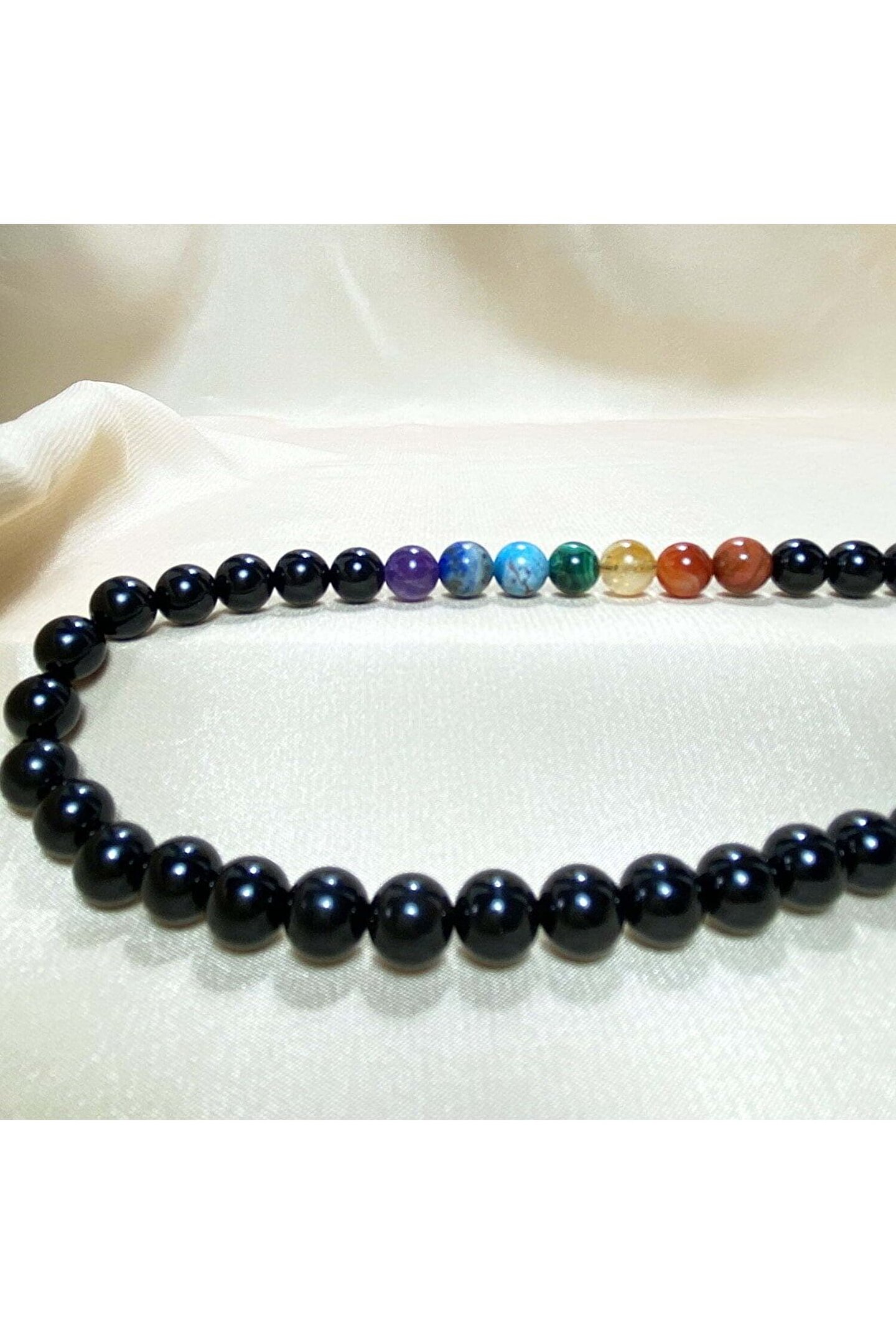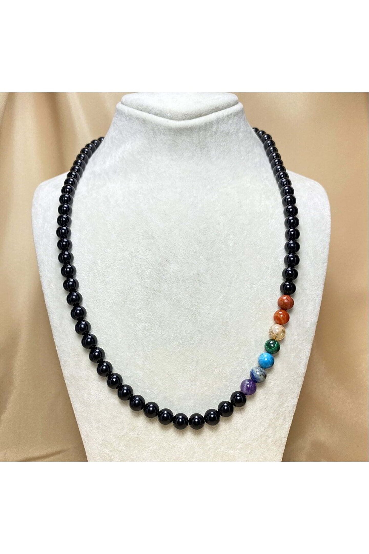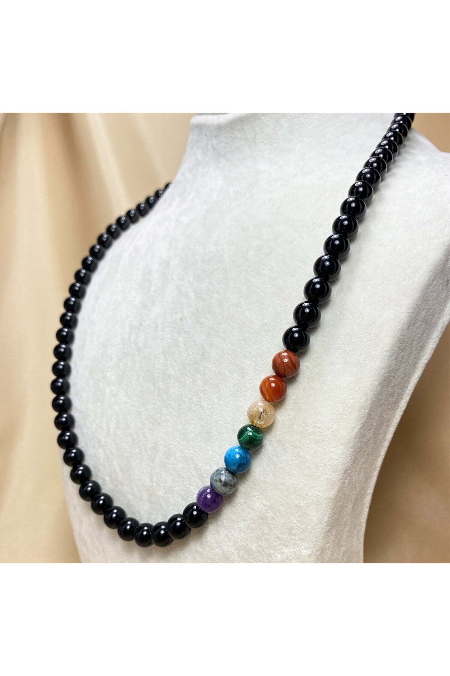 Oniks - Çakra Doğal Taş Kolye (7 Farklı Doğal Taş) *Ametist, Lapis Lazuli, Sodalit, Aventurin, Sitrin, Akik, Oniks* Çakra Taşları, Oniks Doğal Taş Kolyede buluştu. ; 7 Çakrayı temsil eden 7 Doğal Taş ve 7 Renk bir araya gelerek muhteşem bir uyum içinde Çakralarınızı açacak. ; Oniks Çakra Doğal Taş Kolye içindeki her bir renk her bir taş farklı özellikleriyle hayatınıza dokunmaya geliyor. ; Kolye tane ebatları 8 mm / Kolye toplam uzunluğu 66 cm'dir.;