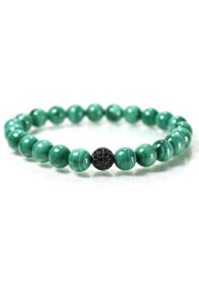 Doğal malakit taşı ile tasarlanmış, her parça benzersiz ve özgün bir görünüm sunar;; Zirkon detayları ile zenginleştirilmiş bu bileklik, göz alıcı bir parlaklık ve zarif bir ışıltı sağlar;; Unisex tasarımı sayesinde hem kadınlar hem de erkekler için uygun, şık bir aksesuar seçeneği sunar;; Doğal taş kullanımı, bilekliğin hem estetik hem de doğallık açısından öne çıkmasını sağlar;;
