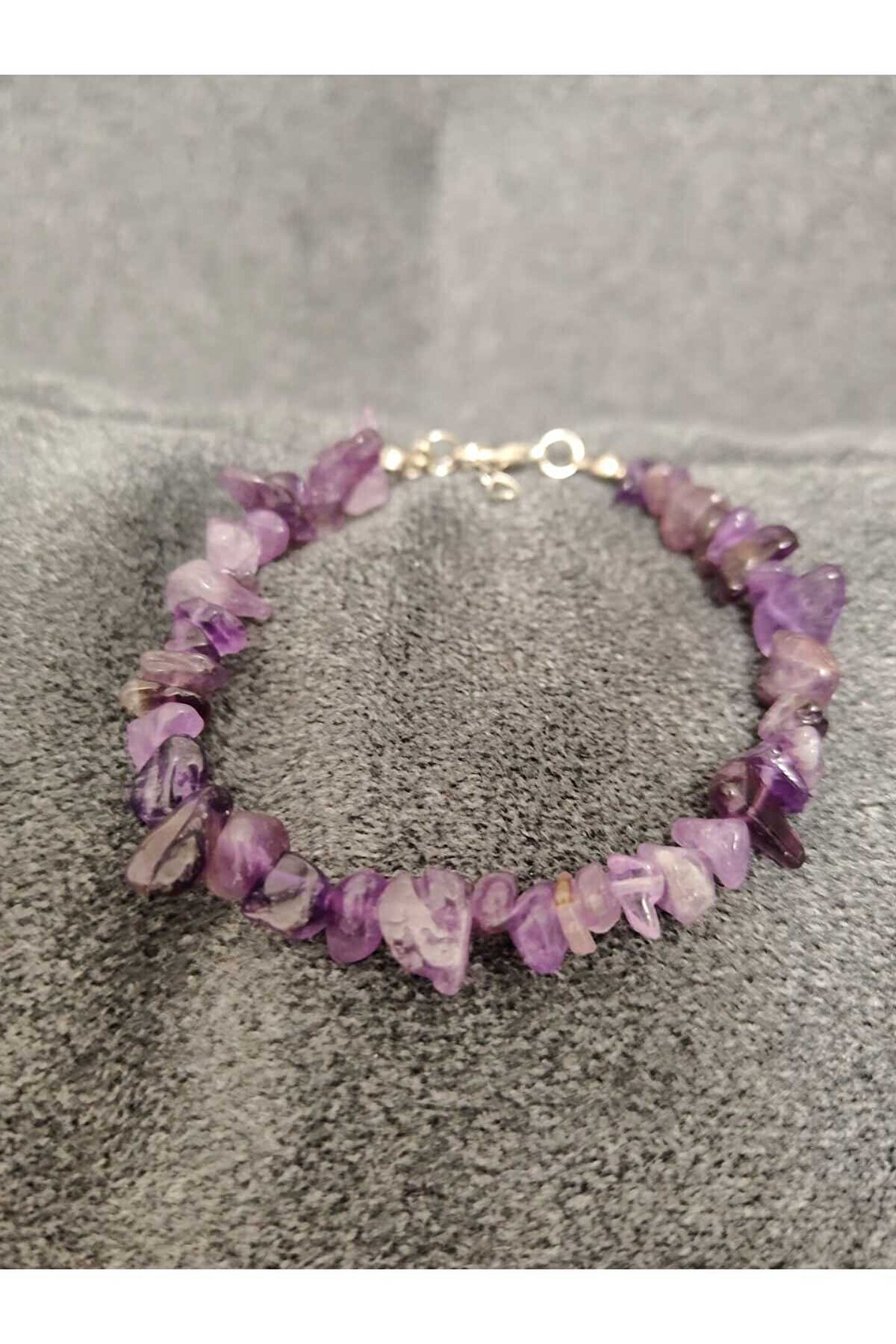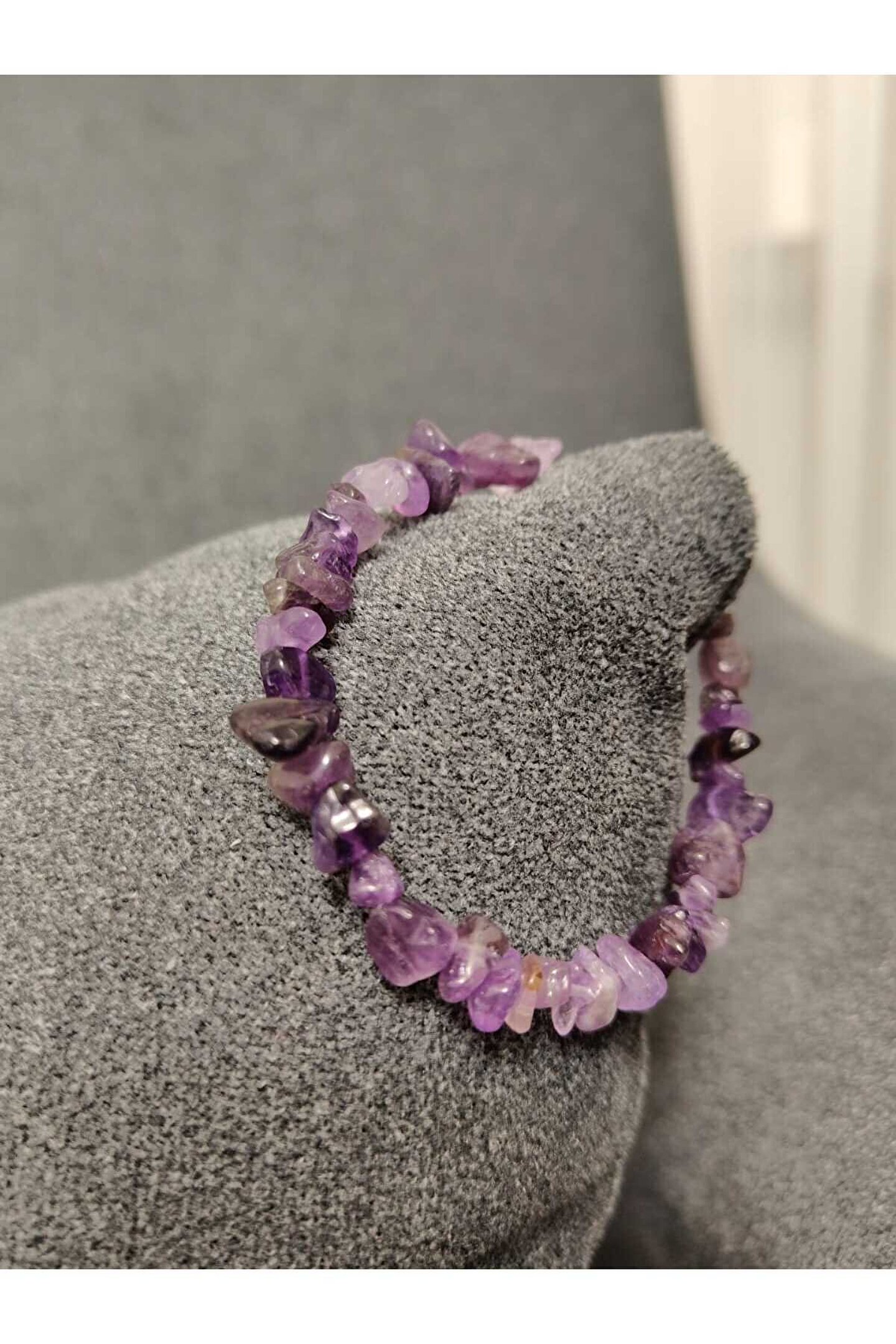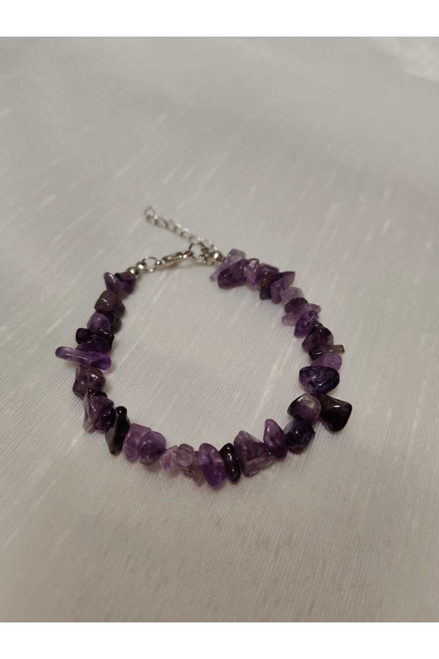 - Ametist kırık taş bileklik, doğal taşların eşsiz güzelliğini yansıtarak şıklığınızı tamamlar.; - Nemli bir bez ile kolayca temizlenebilir; böylece her zaman parlaklığını korur.; - Kadın ve kız kullanıcılar için idealdir; zarif tasarımıyla günlük kombinlerinizde fark yaratır.; - Türkiye'de üretilmiş olup, yerel kaynaklardan temin edilen malzemelerle el işçiliğiyle hazırlanmıştır.; - Metal materyali sayesinde dayanıklılık ve uzun süreli kullanım sunar.; - Doğal taş yapısıyla benzersiz bir dokunuş katarken, her bileklikteki kırık taşların eşsiz deseniyle kişisel tarzınızı ön plana çıkarır.