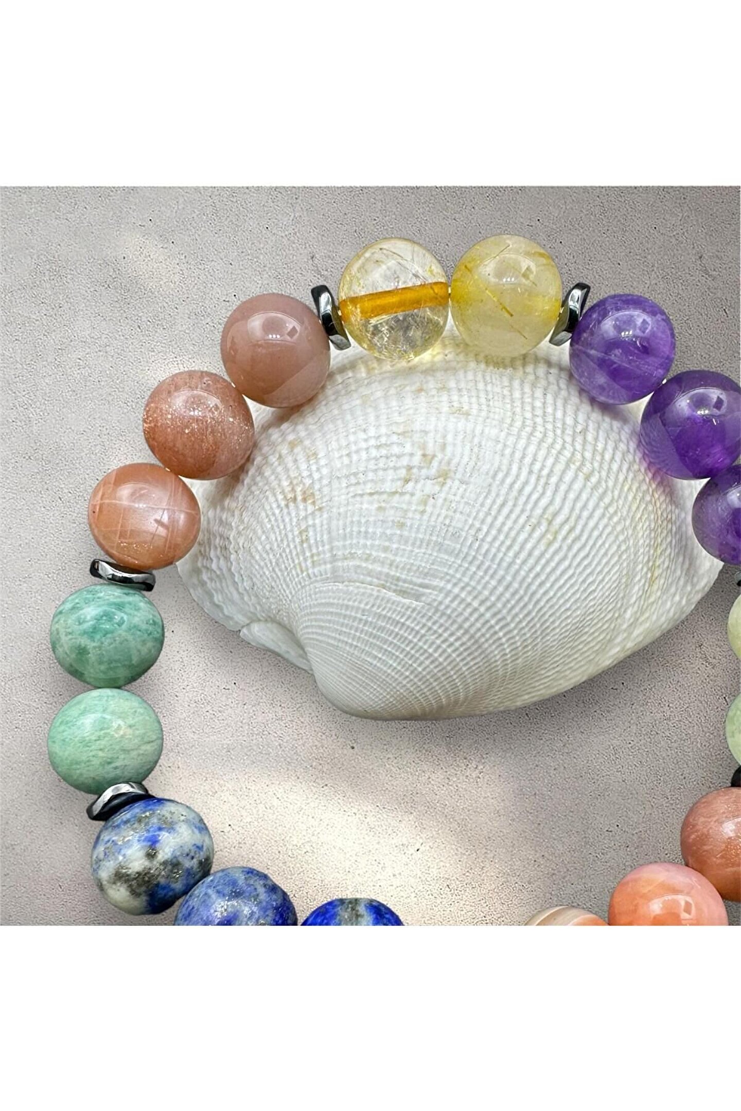 Ürünlerimiz firma orijinallik Sertifikası ile gönderilmektedir. ; -Doğaltaş Bilekliğin İçerisinde Kullandığımız Doğaltaşlar : GÜNEŞ TAŞI , AMAZONİT , LAPİS LAZULİ , AMETİST , PERİNAYT , TURUNCU AKİK , ALTIN RUTİLLİ KUVARS -Ispartali Doğaltaş Evi olarak Siz Değerli Müşterilerimize gerçek Doğaltaş sunmaktayız. ; -% 100 Ürün Garantisi. ; -Taşlar A Kalite ve Gerçek Doğaltaştır. ; -Ürünlerimiz firma orijinallik garantisi ile gönderilmektedir. ; -Sizlere en iyi Hizmeti sunmak için buradayız, sipariş verdikten sonra bizimle iletişime geçebilir ve tüm sorularınıza cevap alabilirsiniz. ; -7 li Çakra Doğaltaştan hazırladığımız Bilekliğimiz ( 10 mm ) Yuvarlak Kesim Doğaltaşlardan oluşmaktadır. ; -Taşlarımız Tamamen olduğu için Damar yapılarında ,Renginde ,Boyutunda ve Kesiminde haifif farklılıklar gösterebilir. ; -7 li Çakra Doğaltaş Bilekliğinizi size özel hediye kutusuyla ,yedek doğaltaş ve Yedek Misina ile gönderim sağlıyoruz. ; -Güven ve kalite ile "Ispartalı Doğaltaş Evi" firması olarak sizlere hizmet vermekten mutluluk duyarız.;