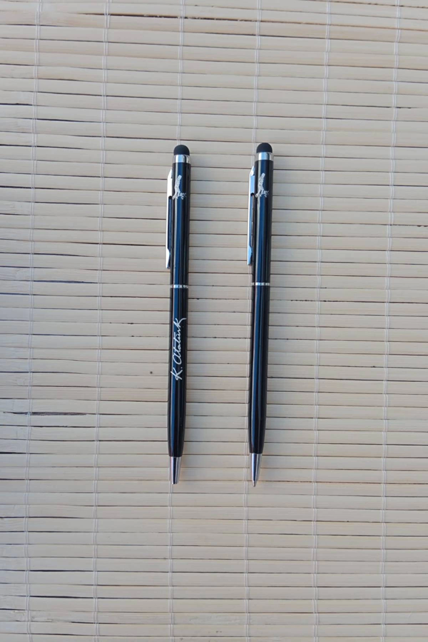 Gazi Mustafa Kemal İmzali Siyah Renkli Lazer Baskili Metal Govde Touchpen Tukenmez Kalem